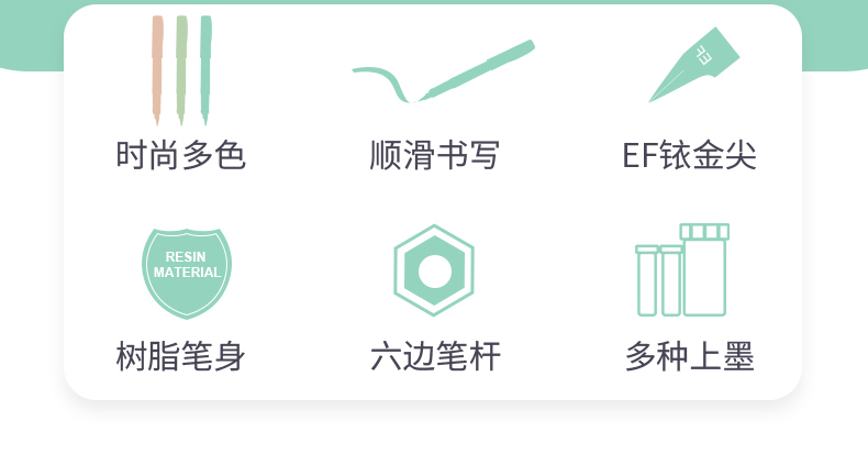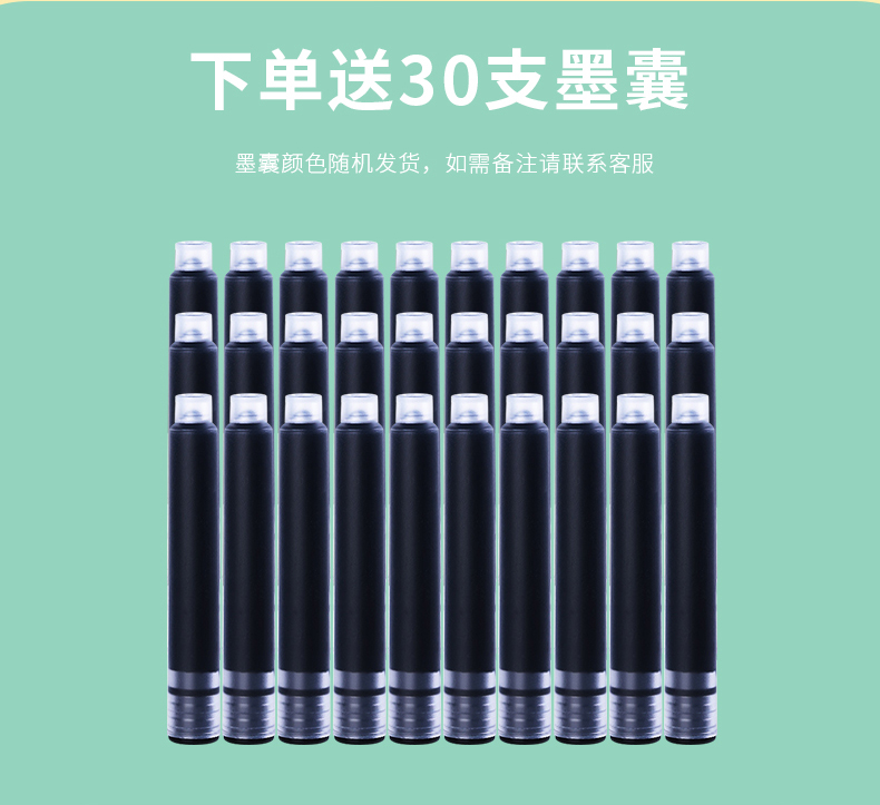 【下单就送30支墨囊】ABS树脂材质笔身,高品质铱金笔尖,减少堵墨断墨现象,符合人体工学设计,矫正握笔姿势,镂空可视化墨窗,高配置钢笔保障长时间书写舒适!