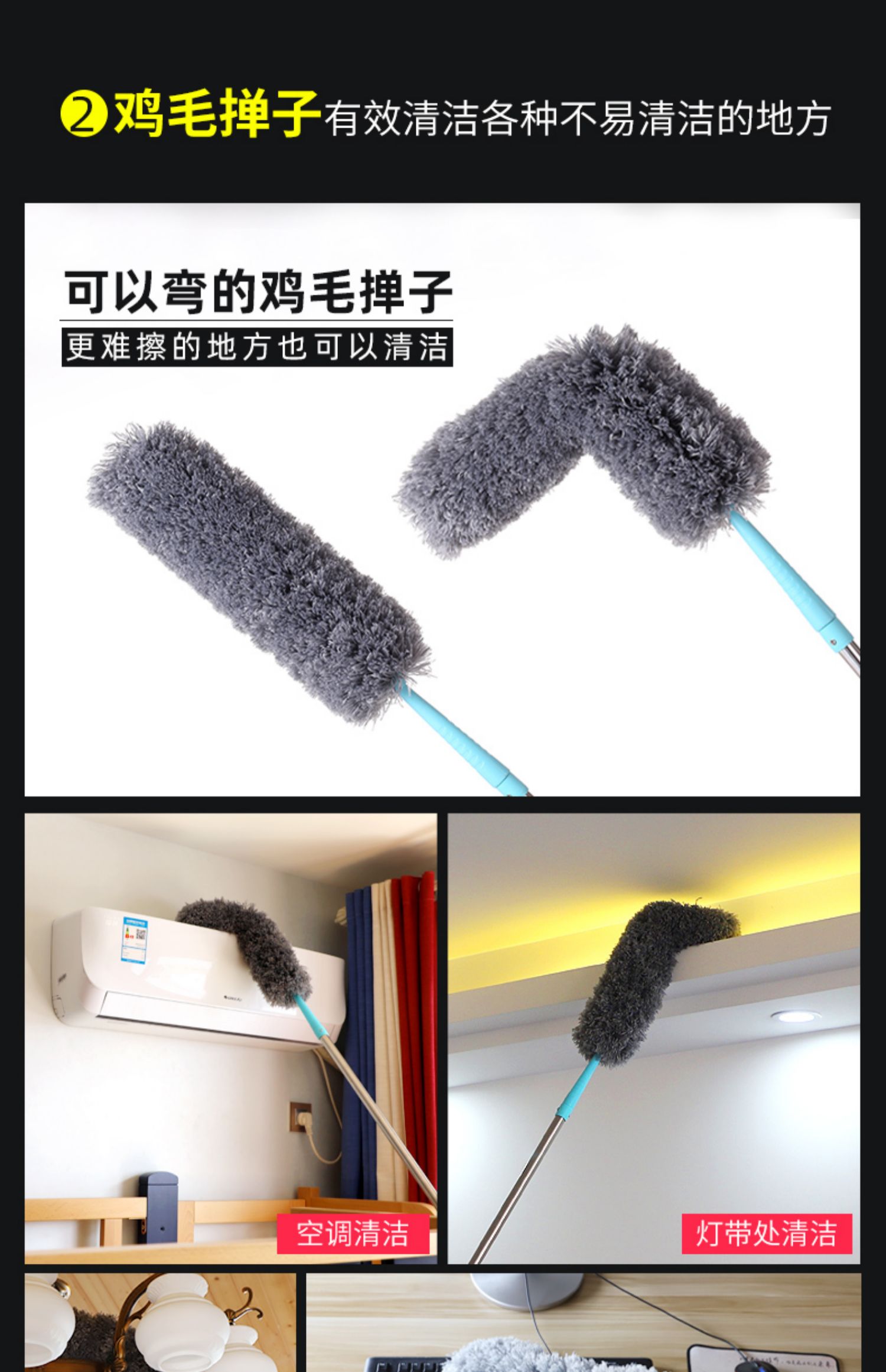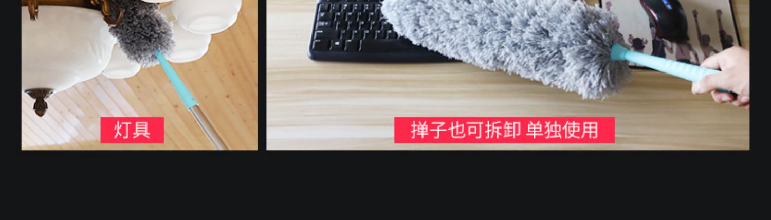 灰尘克星,吸尘不扬尘,柔软细腻,不伤物体表面,不易掉毛,好品质,可弯曲,可伸缩,无缝隙清理,清理各种死角,居家必备!