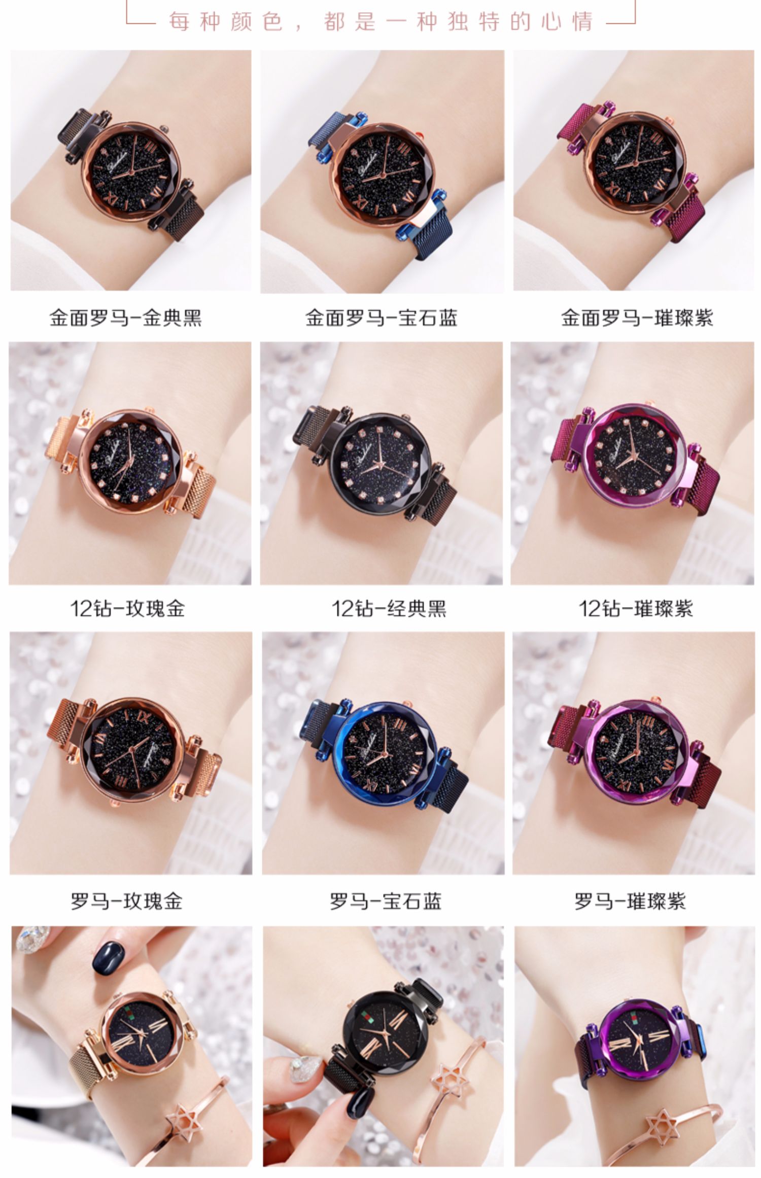 【网红爆火的星空水钻手表】璀璨星空水钻表盘,bulingbuling,美到闪瞎眼,简直不要太亮丽啊!气质表带,潮范造型,出街神器,回头率百分百啊!
