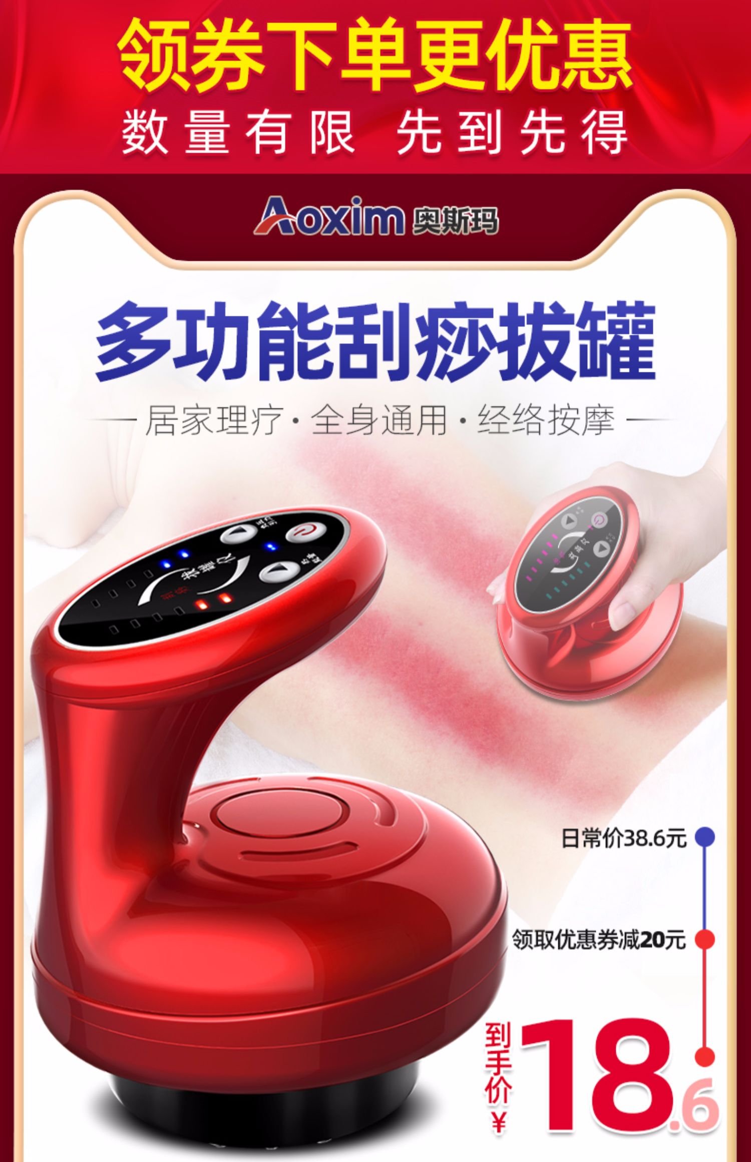 祛湿排毒神器,刮痧+拔罐+瘦身于一体的多功能刮痧理疗仪!超强吸力,3秒无痛刮痧,暖宫热敷,灸敷磁疗,养生秘宝,一机轻松搞定!【赠运费险】