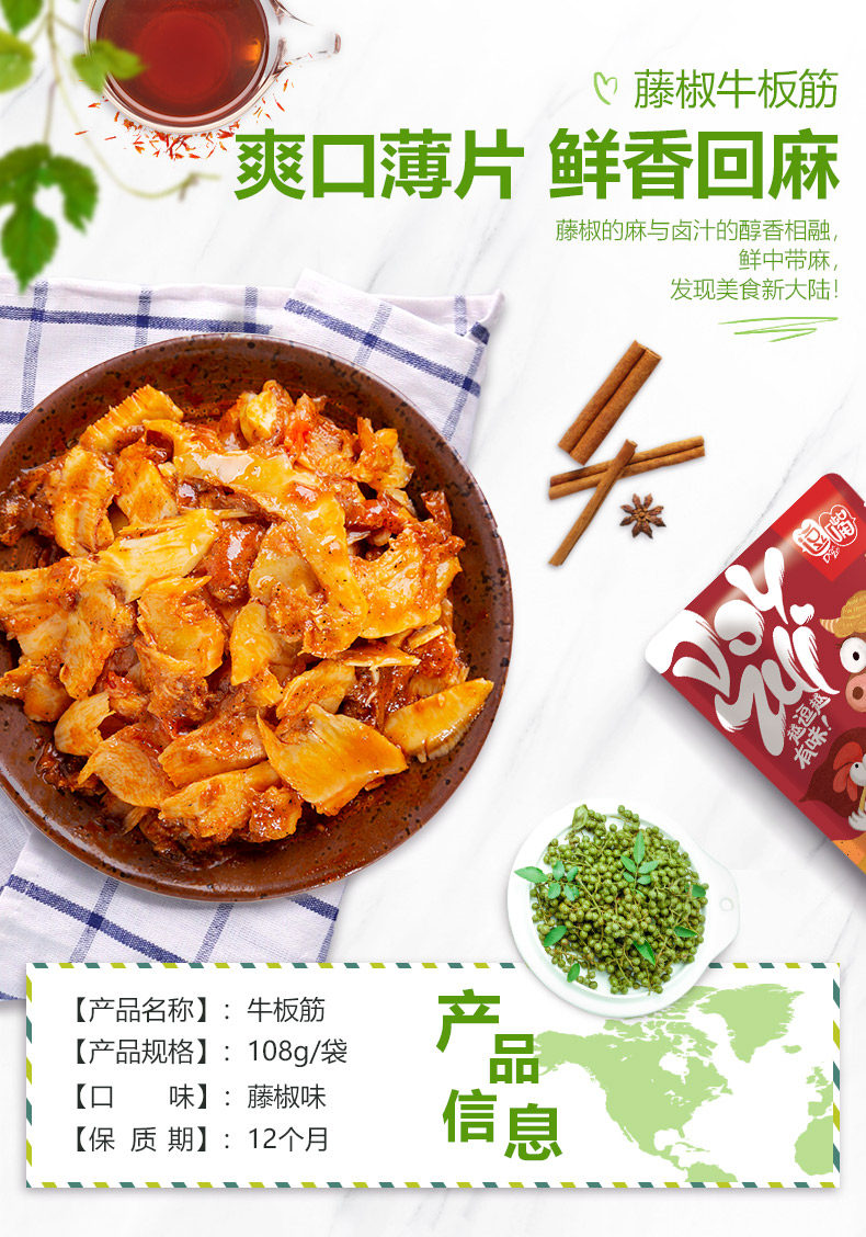 【牛板筋108g*2袋18.8元,拍两份28.7元108g*4袋】划算,麻辣味、烧烤味等4中口味可选!精选牛背主大筋,鲜香有嚼劲,独立包装,分享你要的滋味!