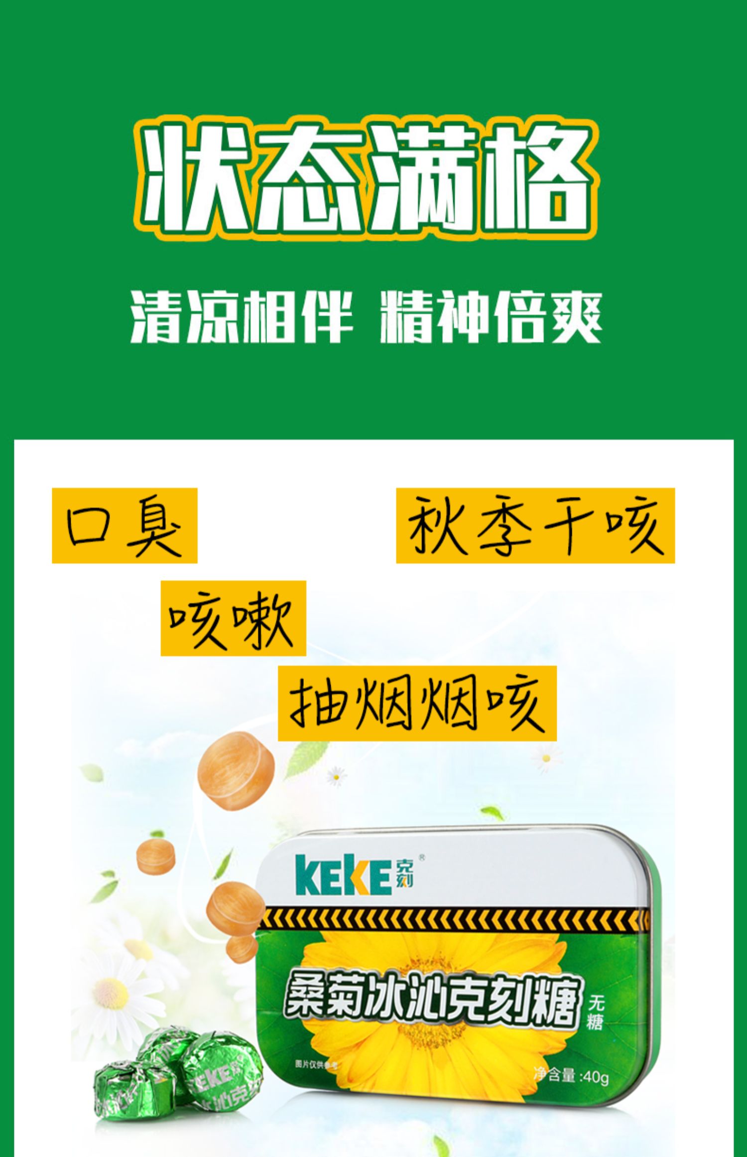【历低】将镇咳进行到底!桑菊冰沁克刻糖,含在口里持续冰爽30钟左右,嗓子不舒服,干痒疼,来一粒,清新口气,冰爽怡人,三盒共48粒!超值!【赠运费险】