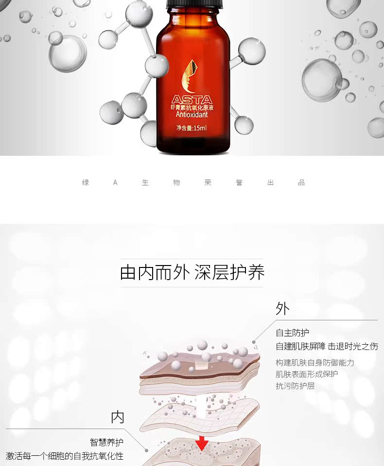 【绿A旗舰店】一瓶了解每一寸肌肤,由内而外深层养护。高效天然抗氧化,抵御多重外界刺激:改善皮肤暗沉、肌肤屏障、抗老化,避免胶原蛋白流失、深层滋养肌肤。