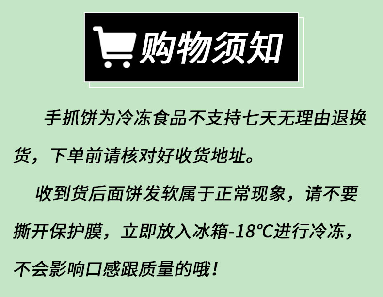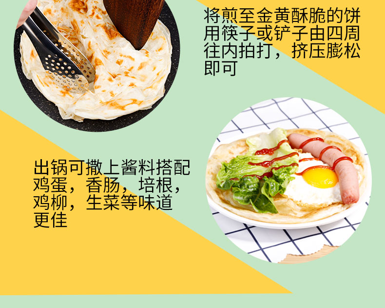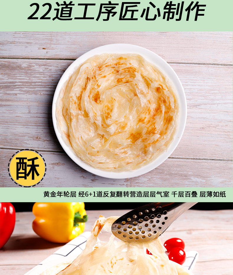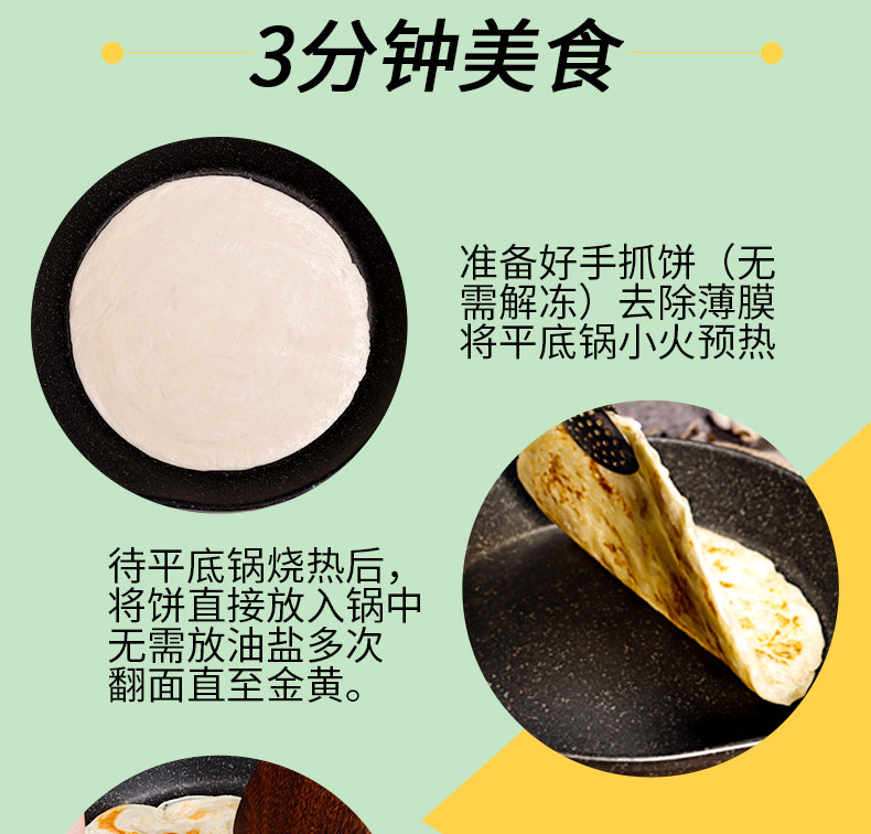 【多仓发货,极速到家,一片不到8毛钱!送纸袋+酱包】采用高品质小麦粉,揉入鲜美香葱,反复压延,成就好手抓饼,三分钟即食,简单易操作,外焦里嫩,松脆可口,营养又美味!