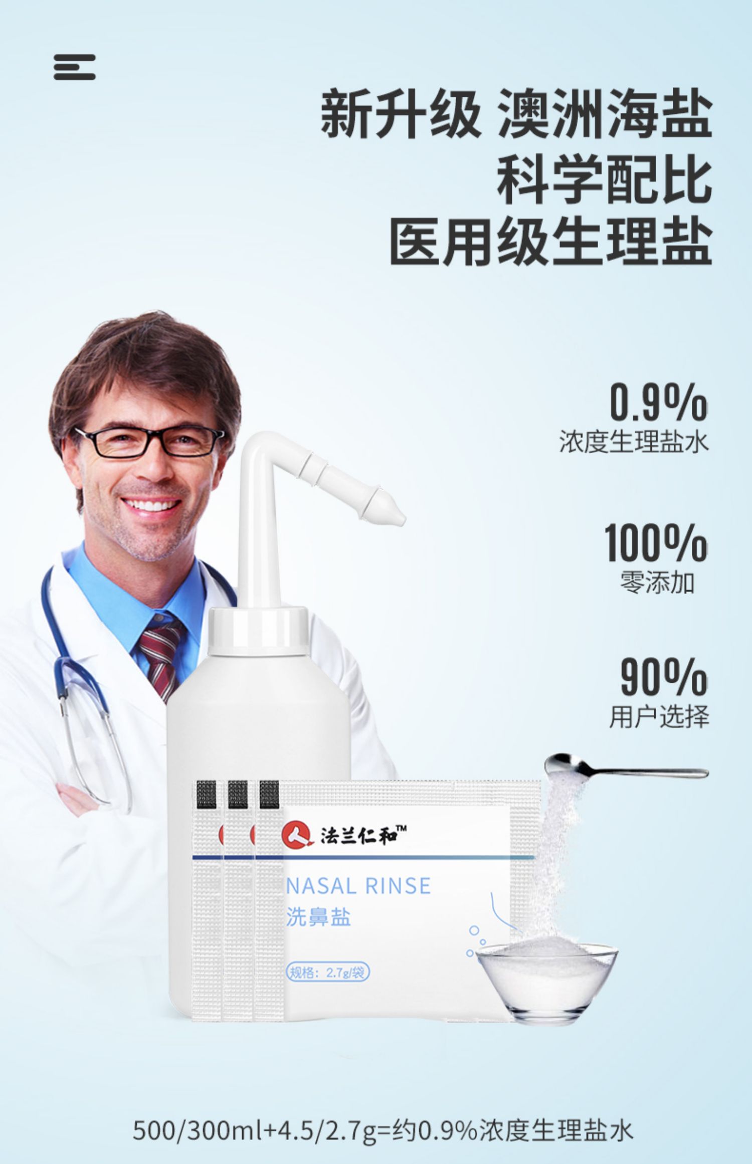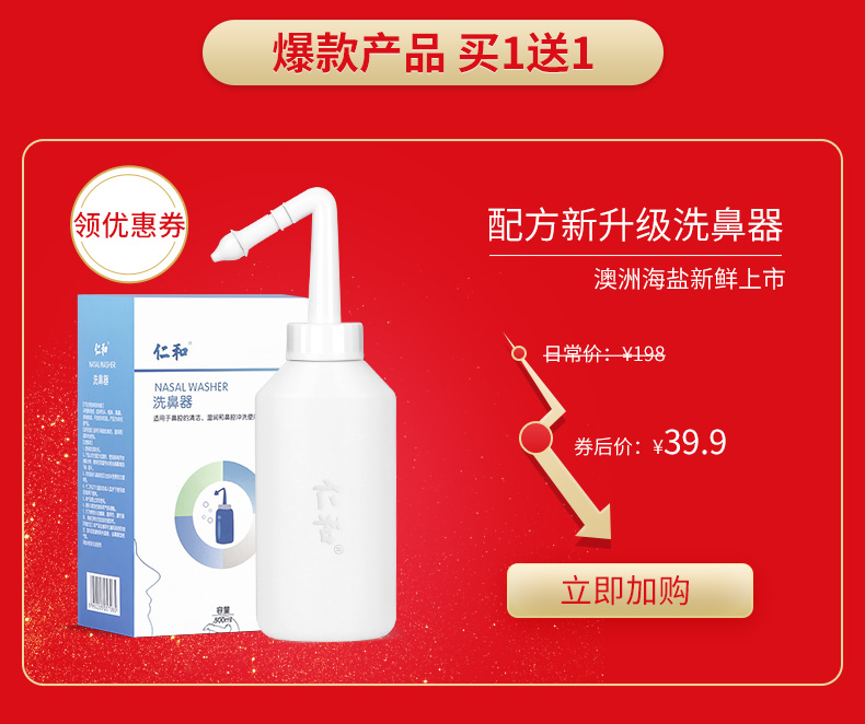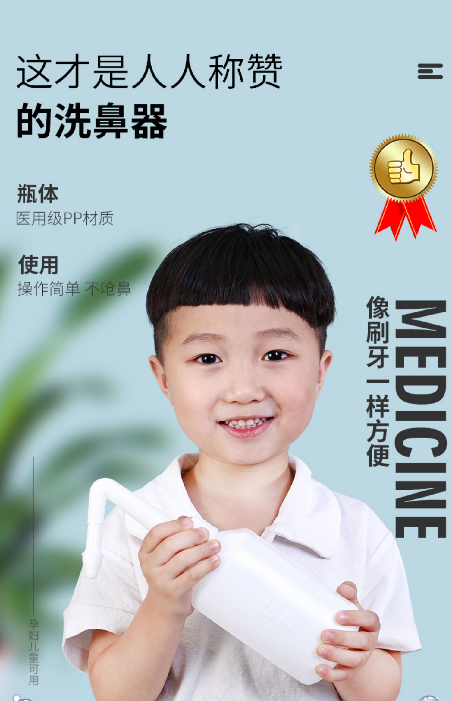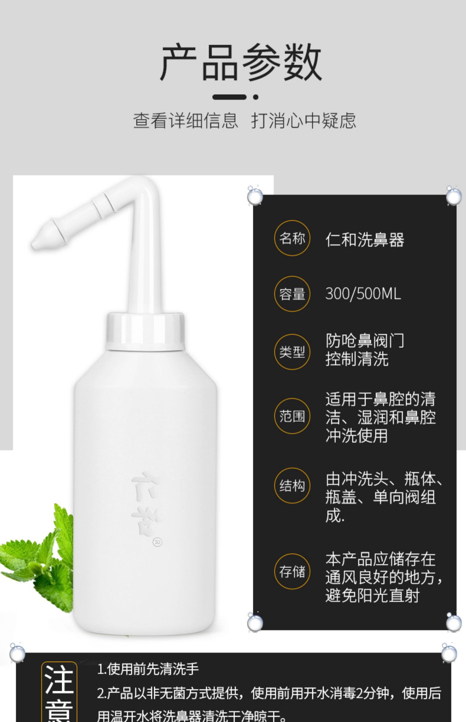 【赠运费险】【大小喷头各一个+5包洗鼻盐】仁和品牌,品质保障!医用材质安全无毒!双喷头配置,成人儿童都能用~轻松洗鼻不呛水,一天两次,保持鼻腔干净,和鼻炎说拜拜~
