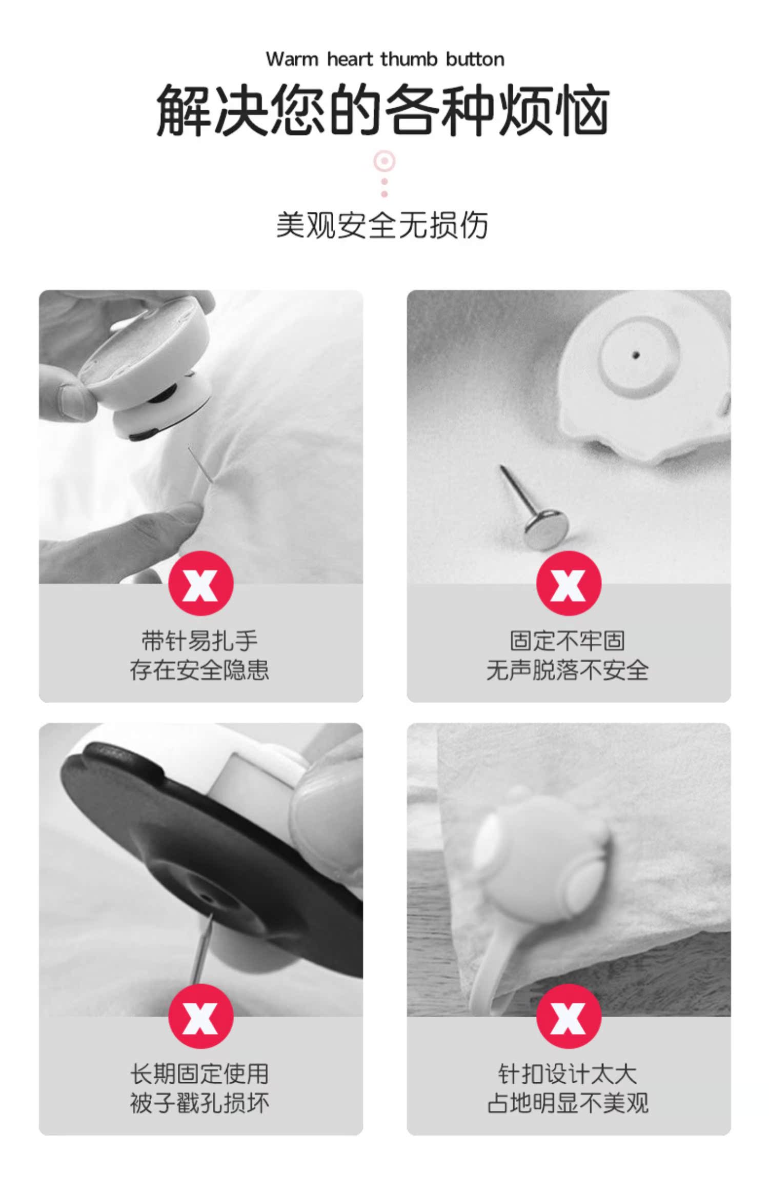 【一盒六只,一只顶两只】全面升级第三代双头被子固定器,一被子不分离,一键解锁,时尚外观,无针固定不伤被哦更稳固,更舒适适用于99%的被子,拒接冰冷,拒接不安全~~