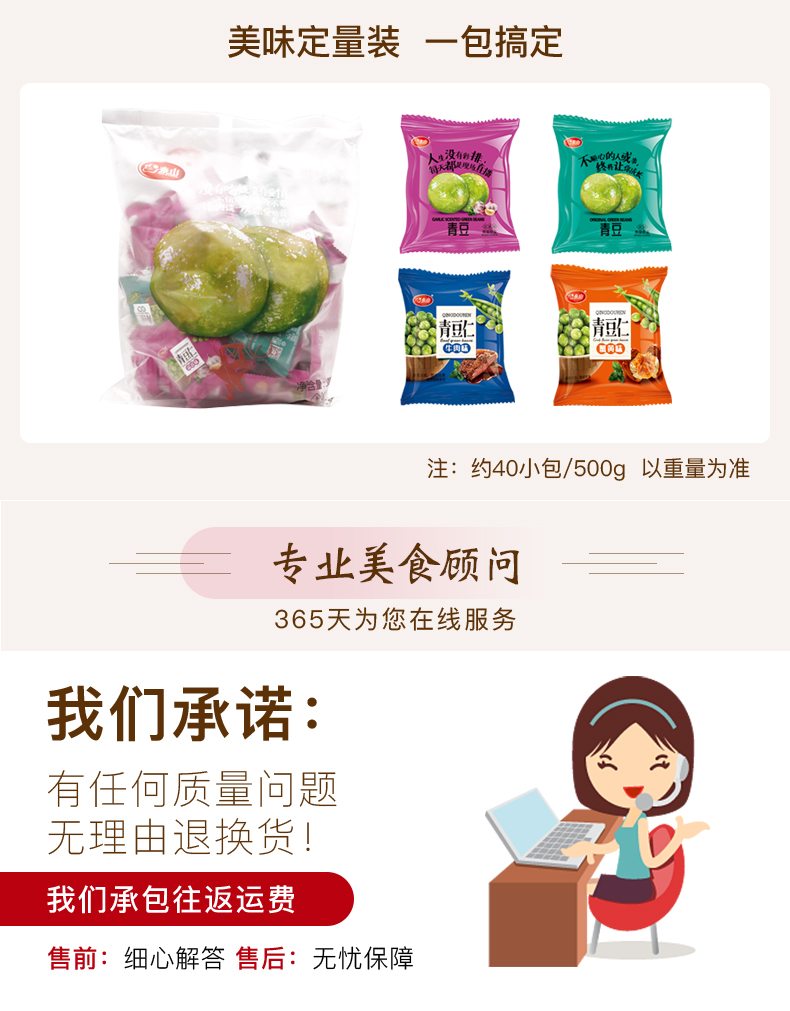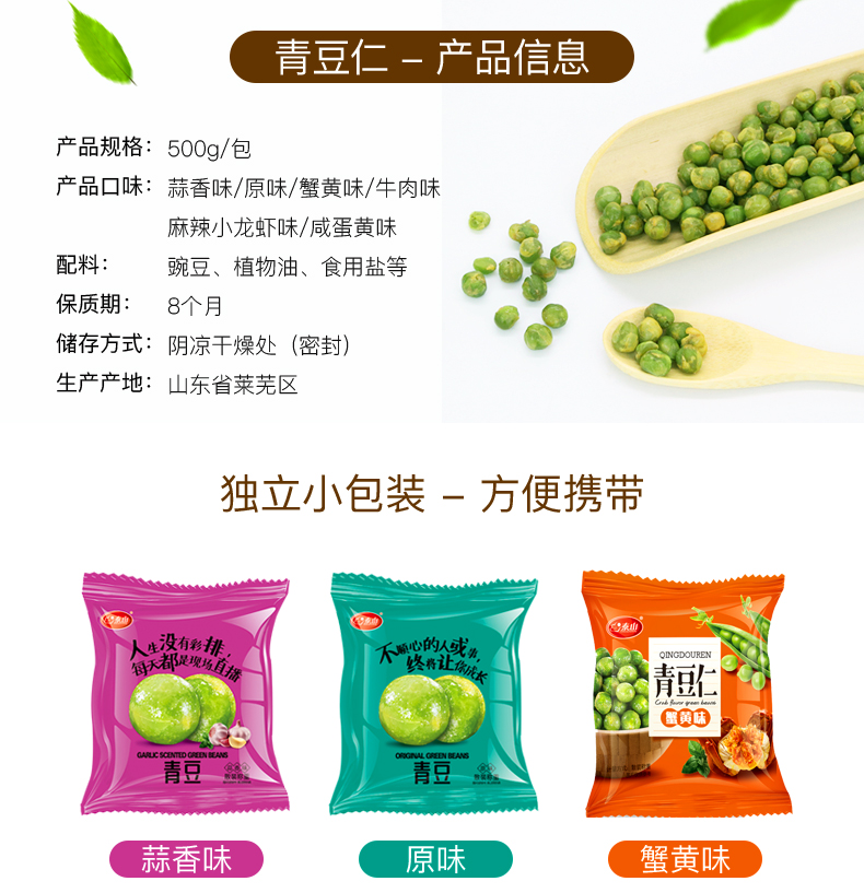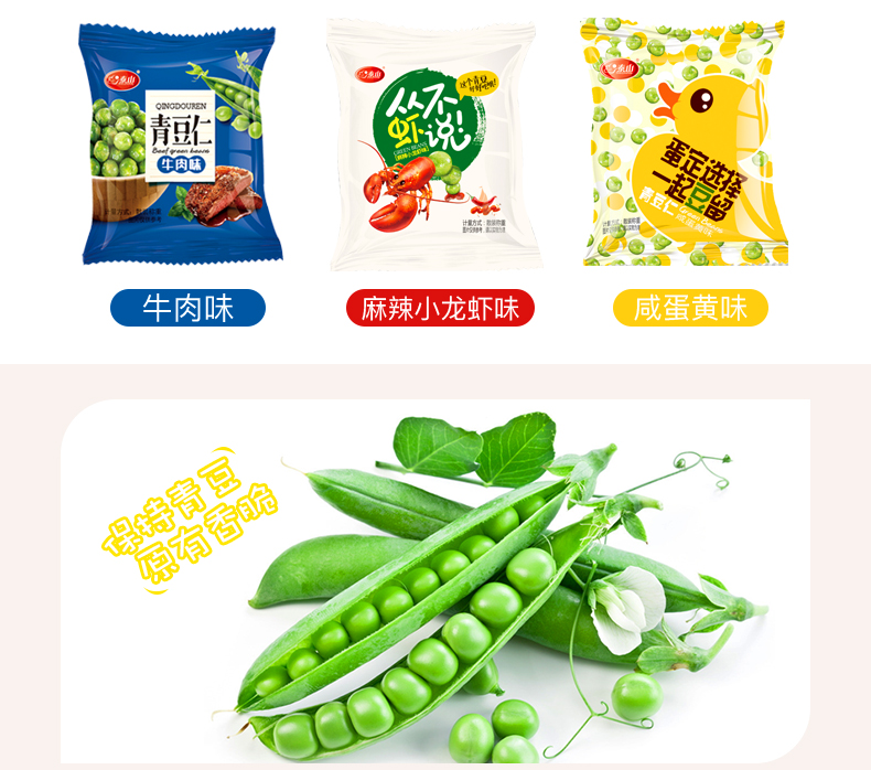 超多种口味任你选,蒜香+原味+蟹黄+麻辣小龙虾+咸蛋黄味,香酥可口,独立小包装,青豆嘎嘣脆的口感,满足你挑剔的味蕾,好吃!