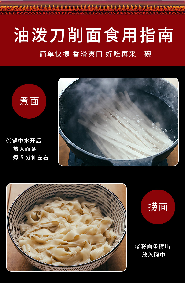 百人验货,都说好吃,刀削面,是所有爱好宽面条的伙伴戒不掉的瘾,刀削挂面以棉、香、筋、稀、不粘不黏不荤汤的特点而吸引人,独立包装,易存储,口感筋道爽滑