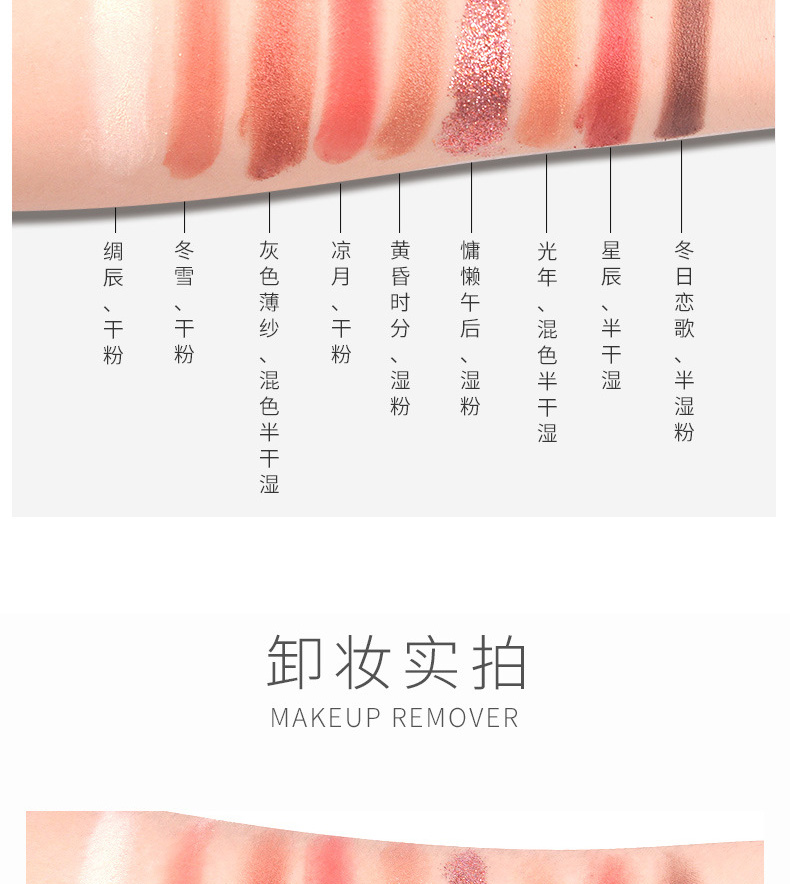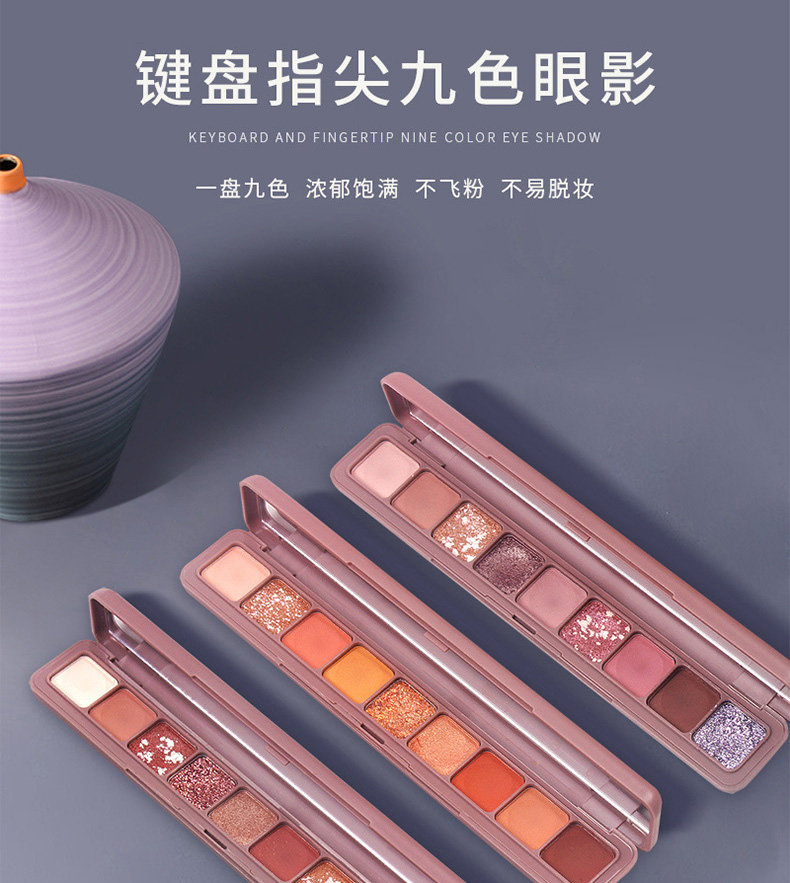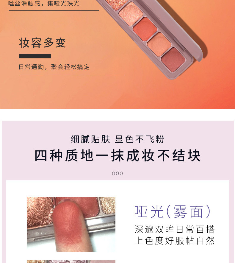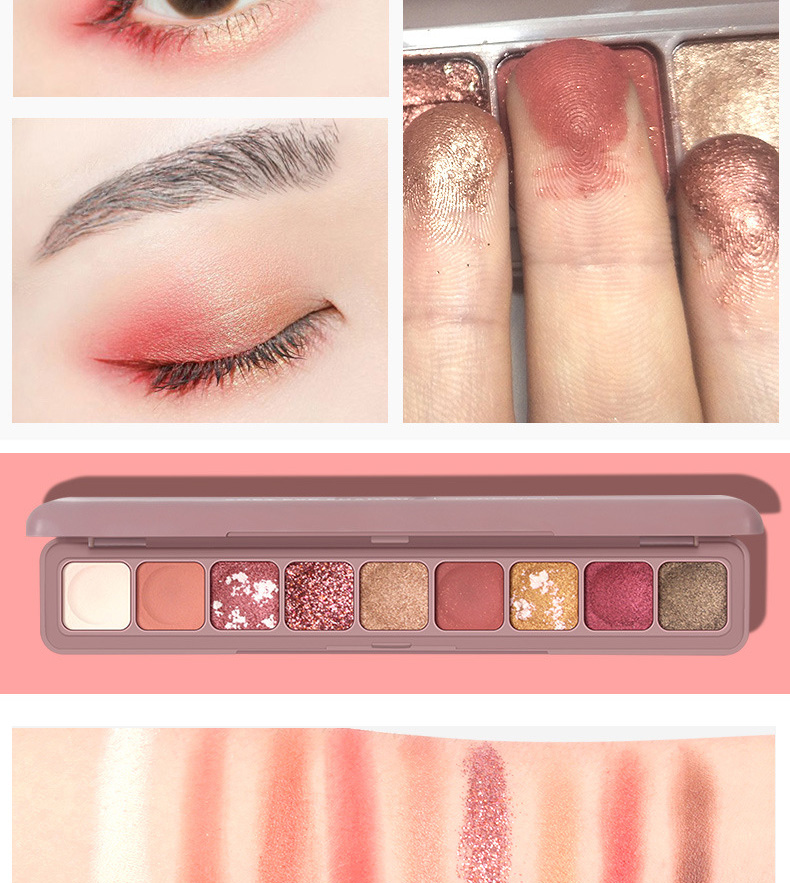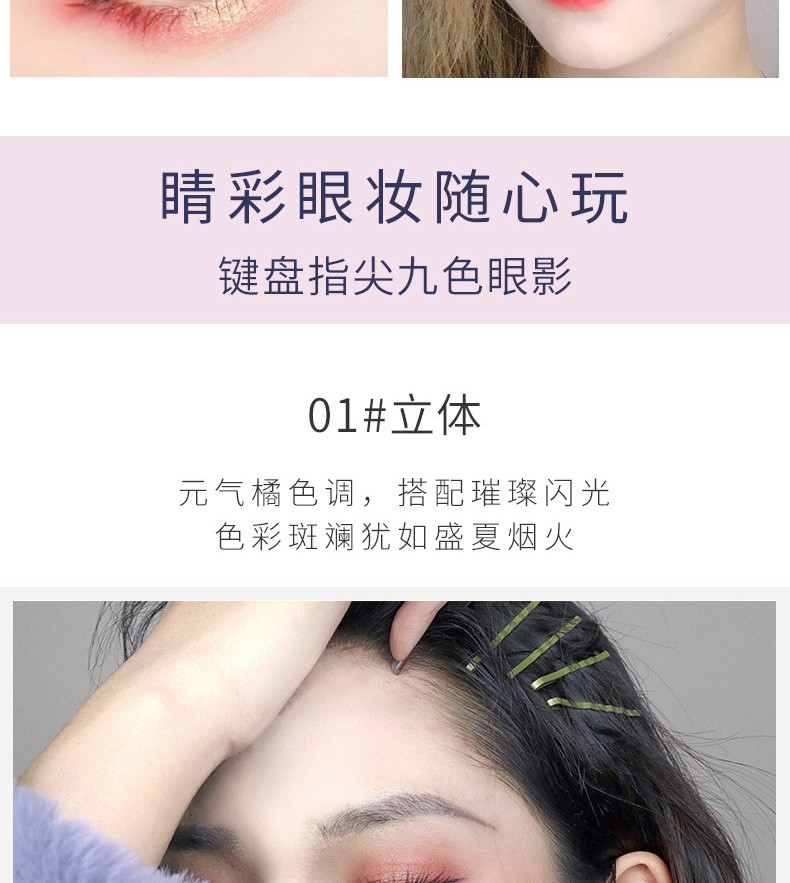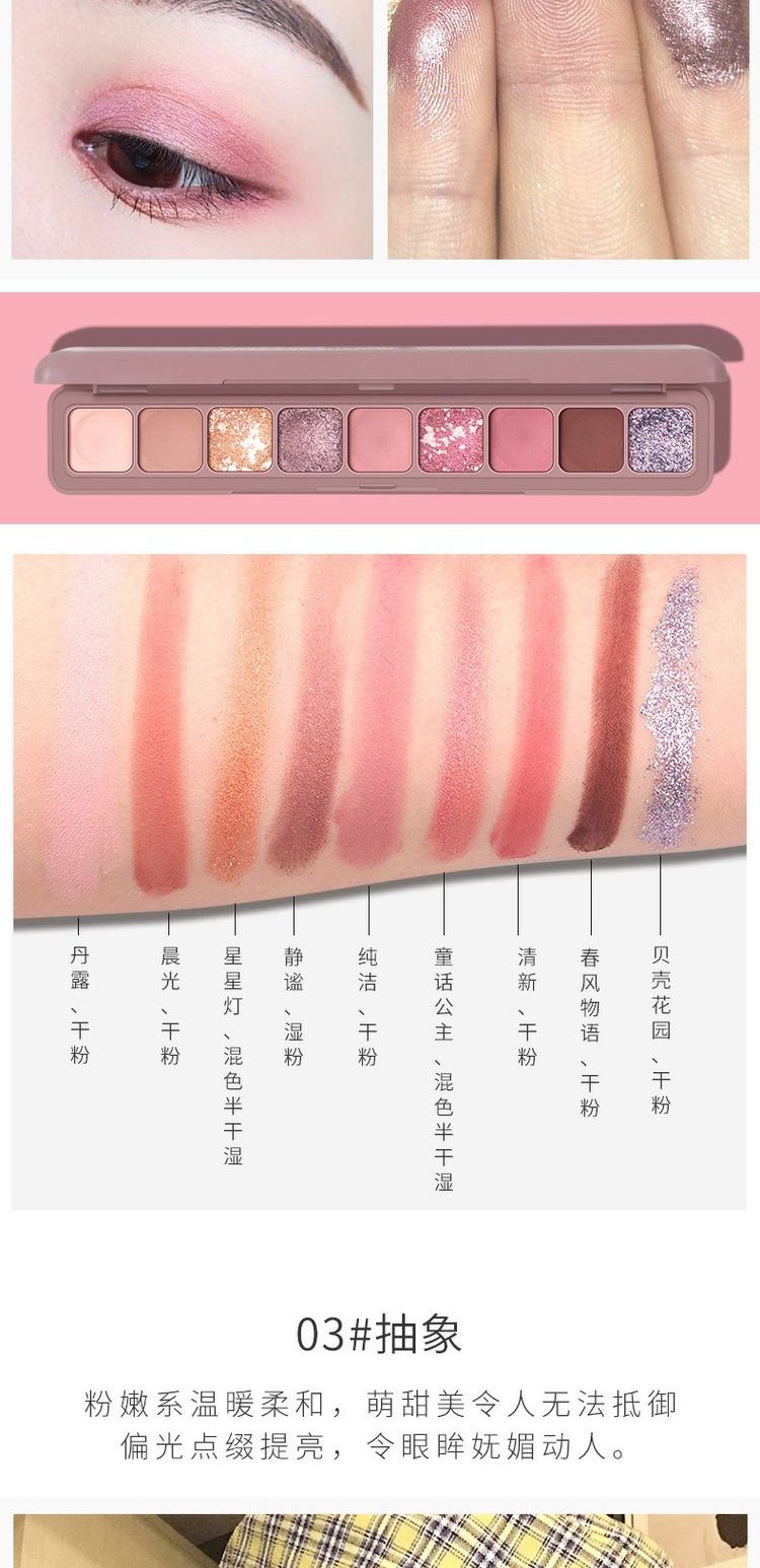 9色眼影盘,四种质地一抹成妆,自然服帖,初学者福音,质地松软细致顺滑,易上色不飞粉,防水不晕染,斩男妆!