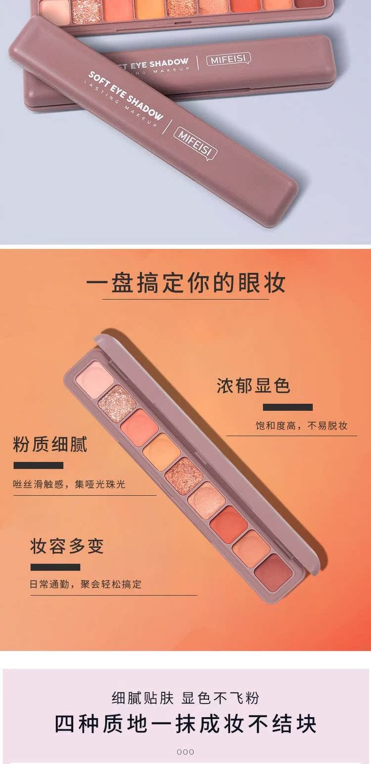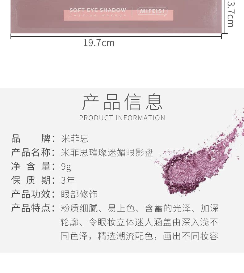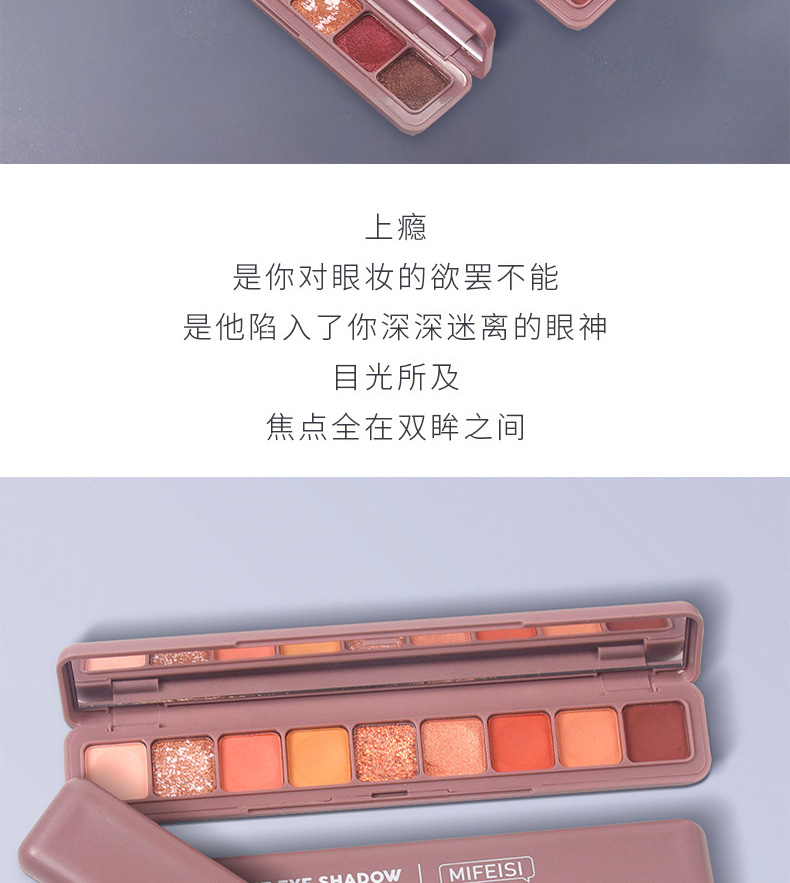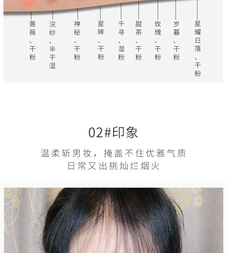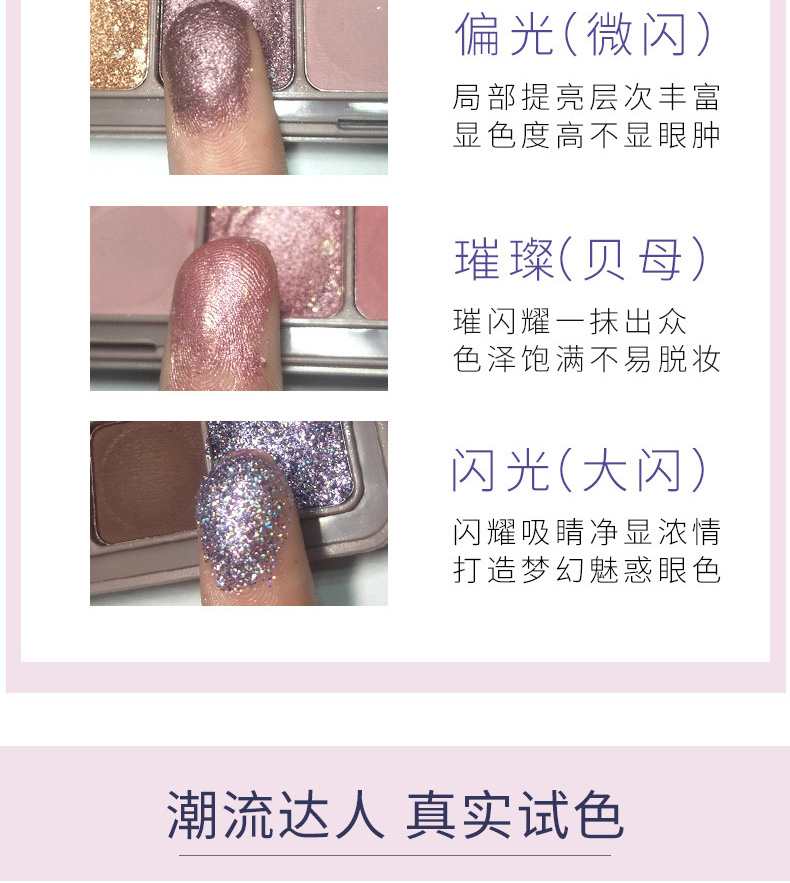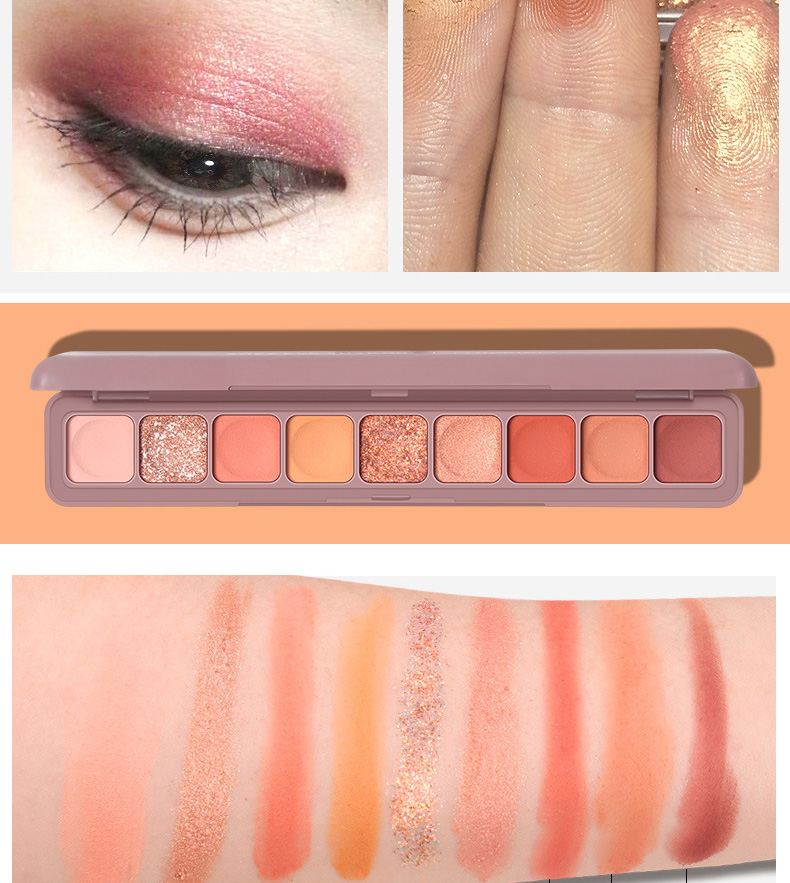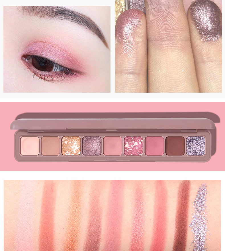 9色眼影盘,四种质地一抹成妆,自然服帖,初学者福音,质地松软细致顺滑,易上色不飞粉,防水不晕染,斩男妆!