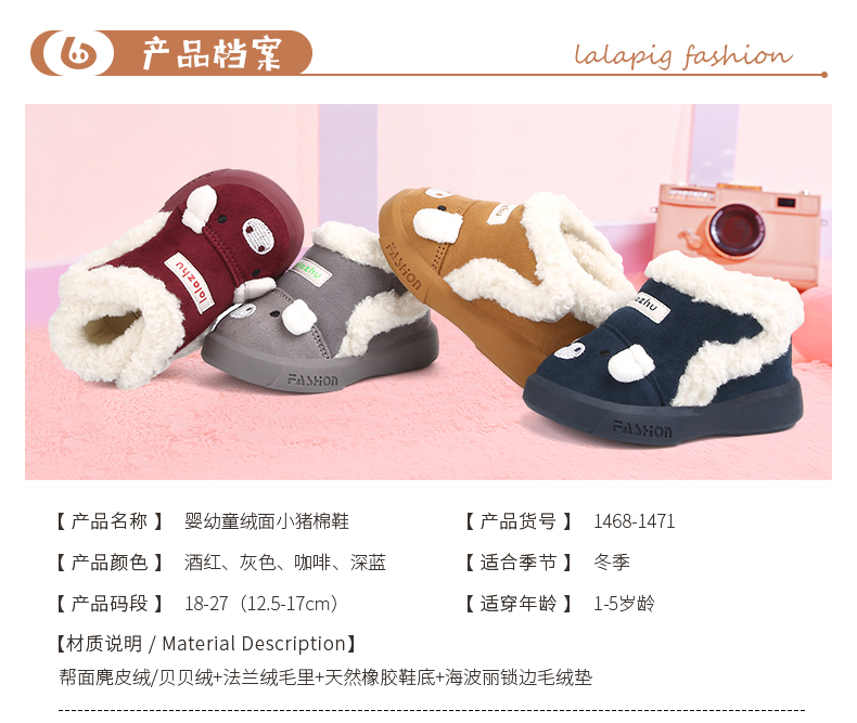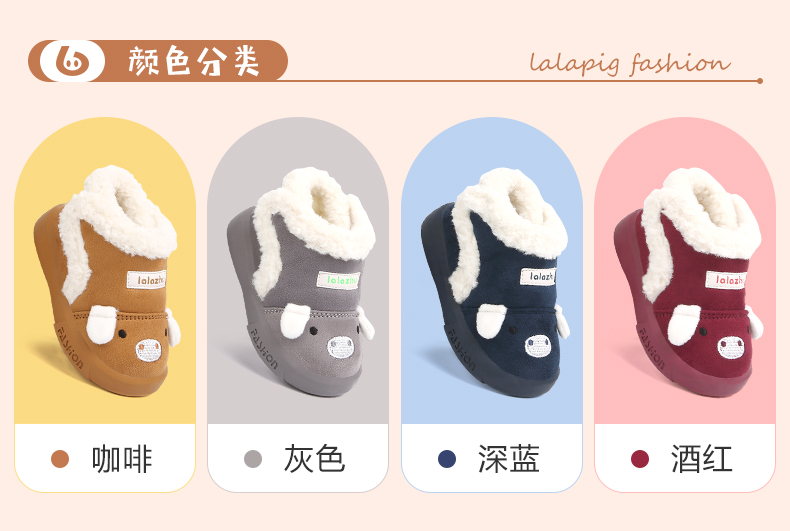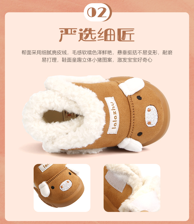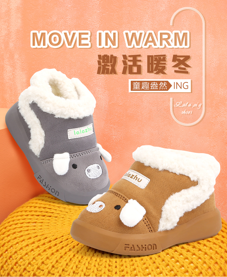 【拉拉猪】冬季儿童加绒保暖学步鞋