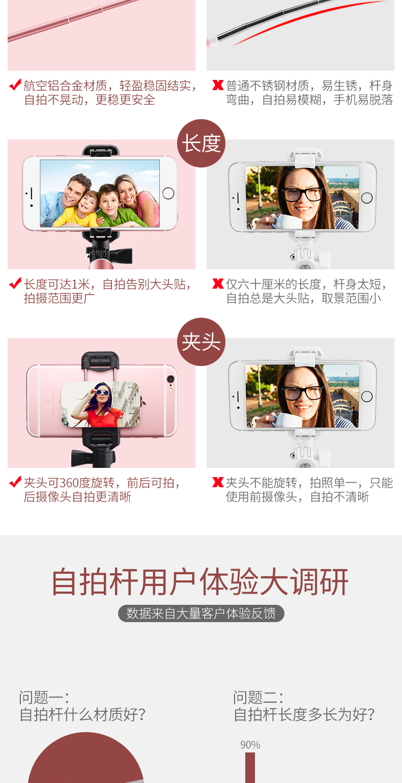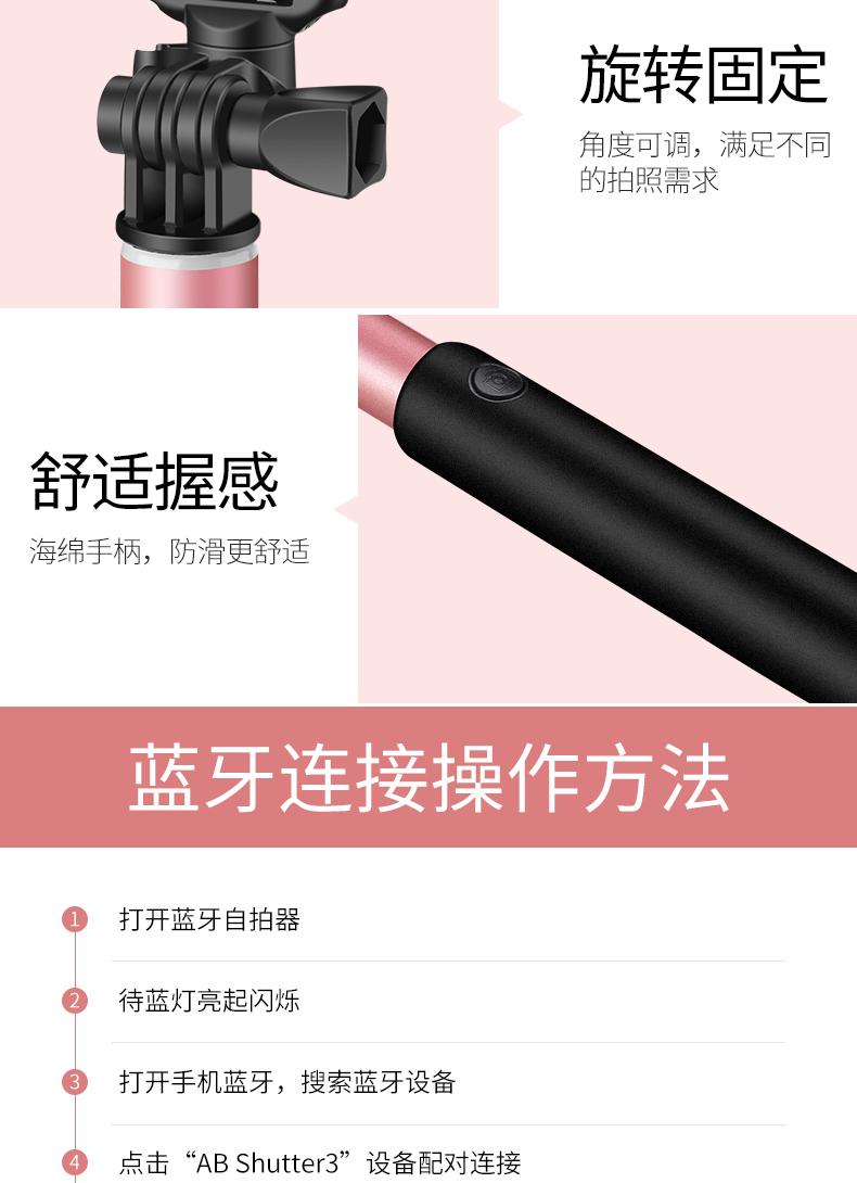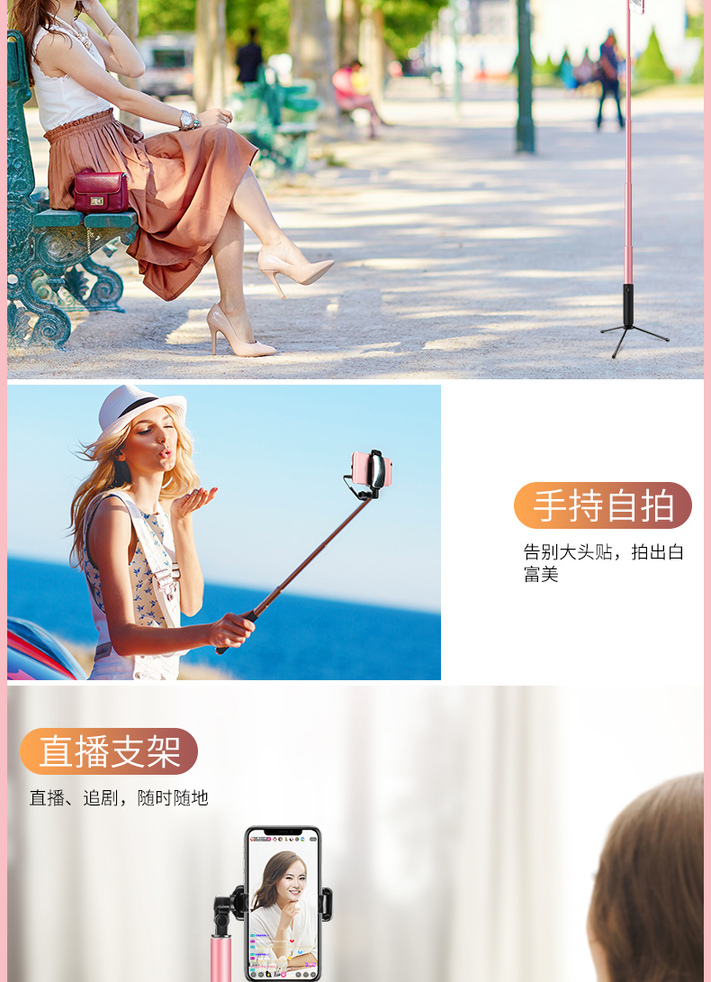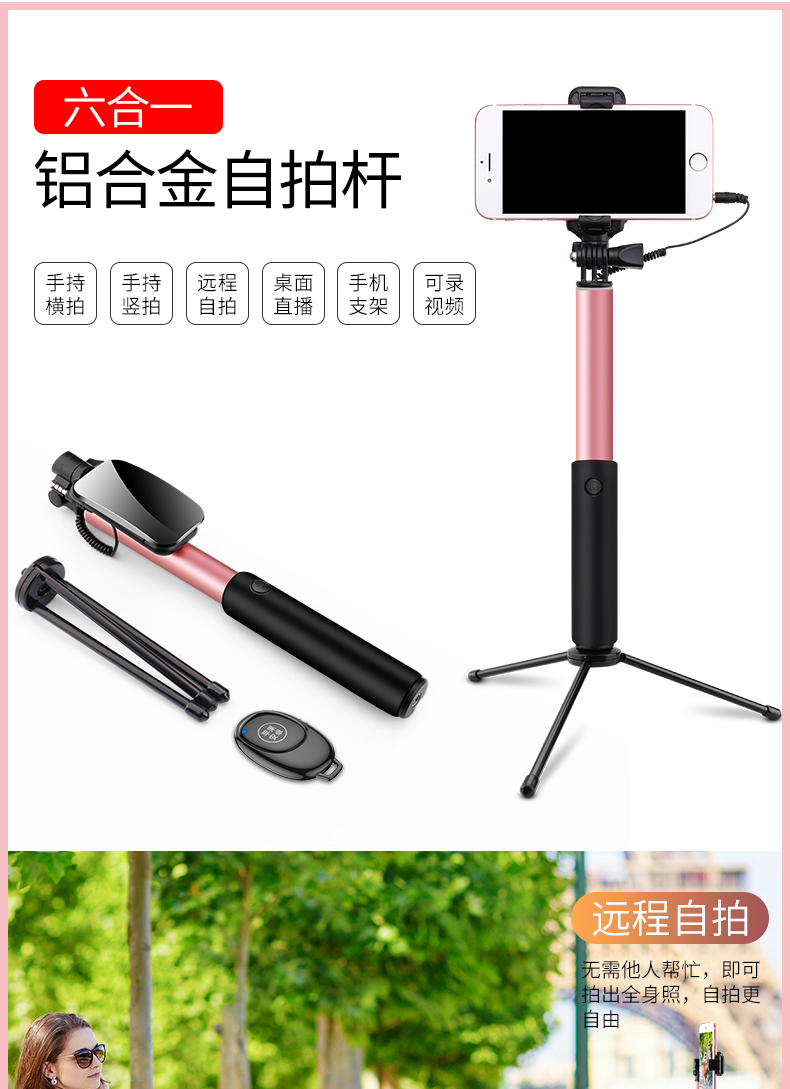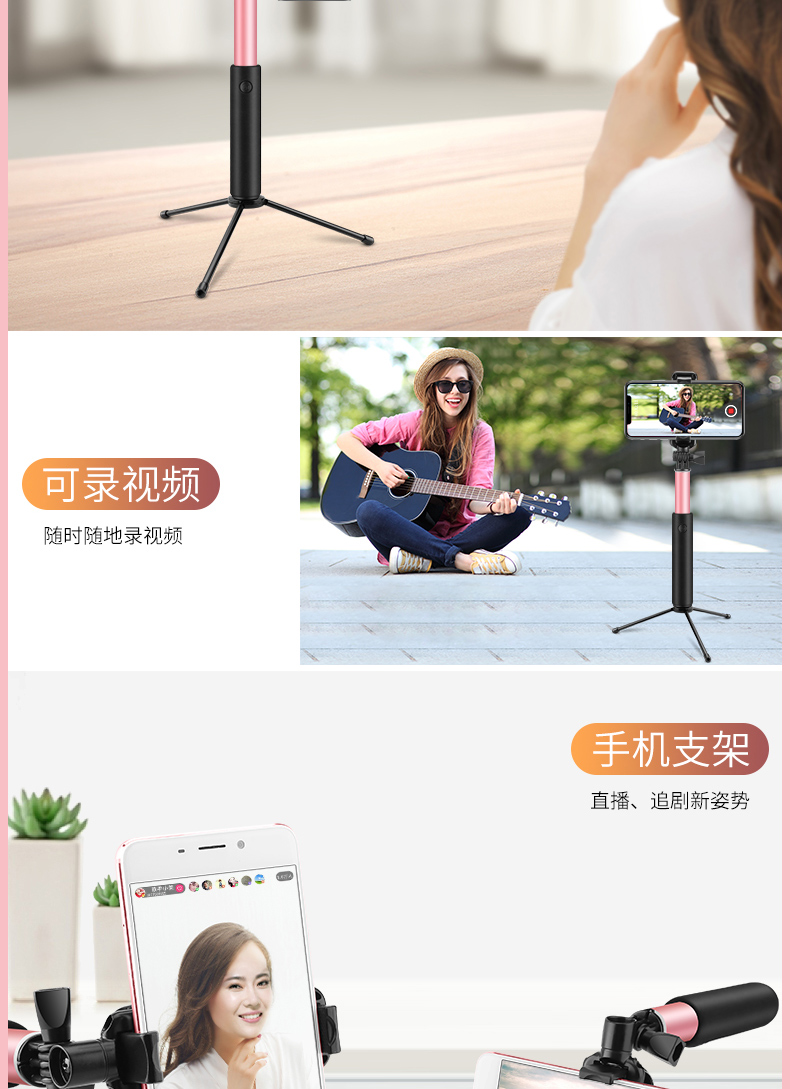 【收纳袋+挂绳!30多万4.9高评分】自带后视大面镜,更高清更美丽,一体设计,轻质铝材,便携自如,蓝牙遥控自拍,360度旋转夹口,随心自拍,优质硅胶防滑垫,拍照更稳固!【赠运费险】