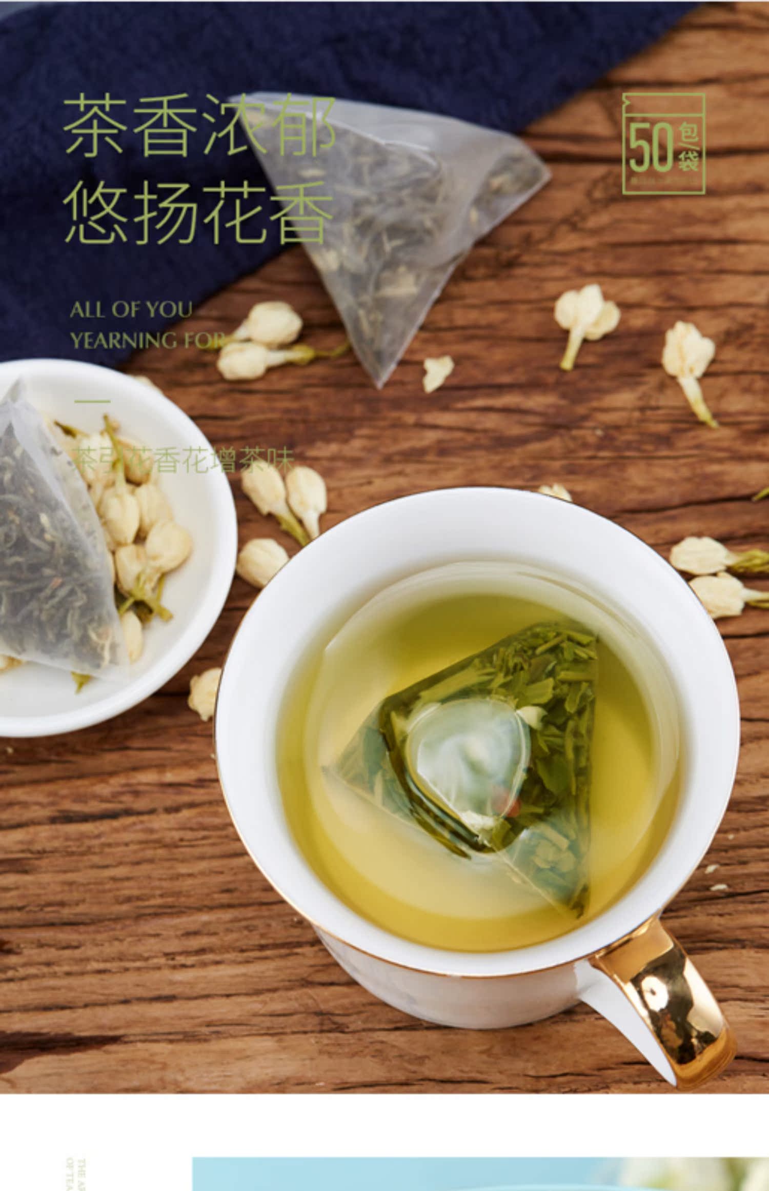 【大分量50包收藏还送梅森杯】家乡缘浓香型茉莉绿茶,采用优质雨前茉莉绿茶,三角袋独立装,携带方便,茶汤橙黄透亮,清澈,口感甘鲜,回味无穷!