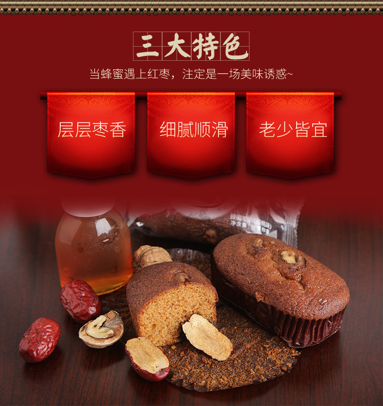 北京特产蜂蜜核桃红枣蛋糕手工网红糕点美食早餐零食小吃面包整箱核桃蜂蜜红枣糕5种配料,早餐下午茶熬夜充饥。