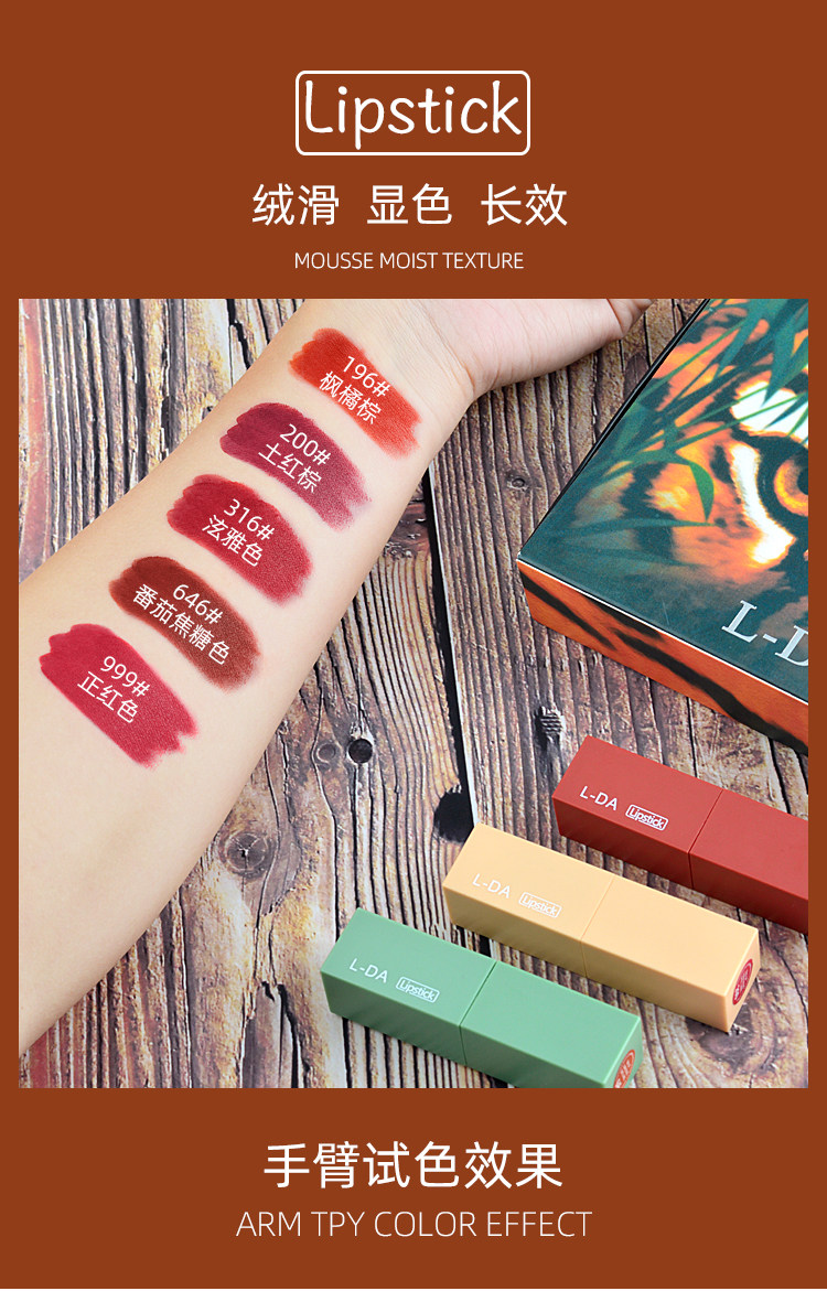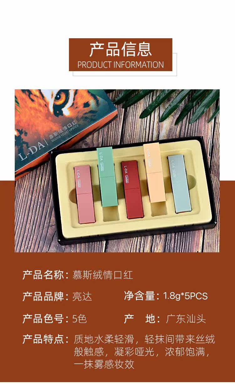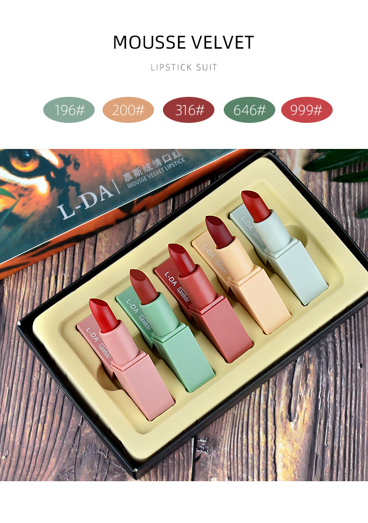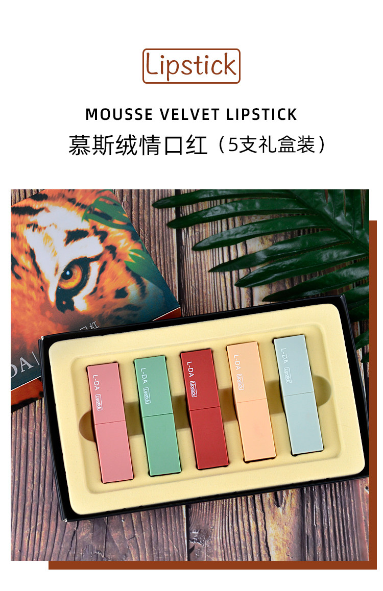 网红爆款 莫兰迪哑光动物口红5支套装