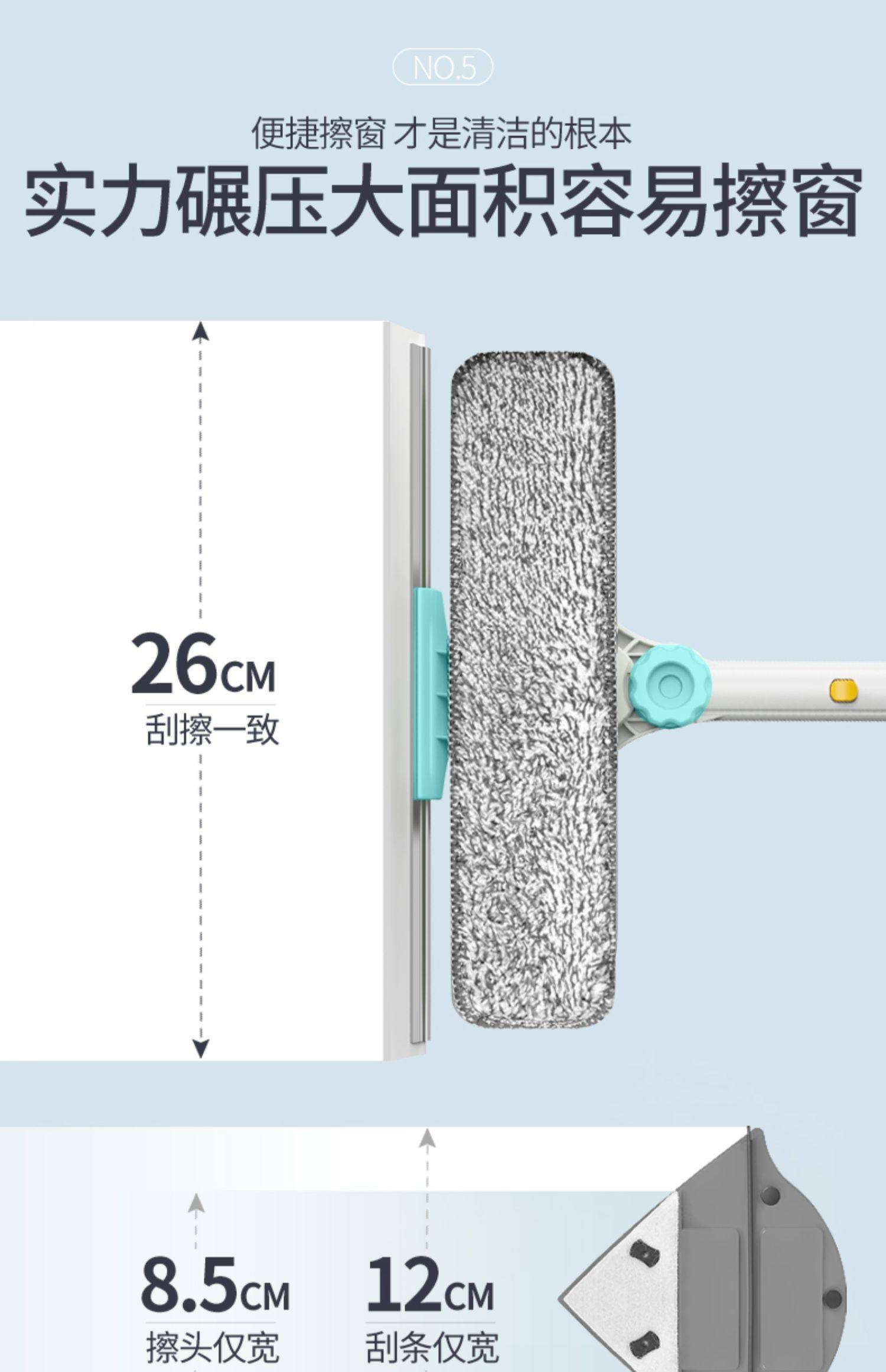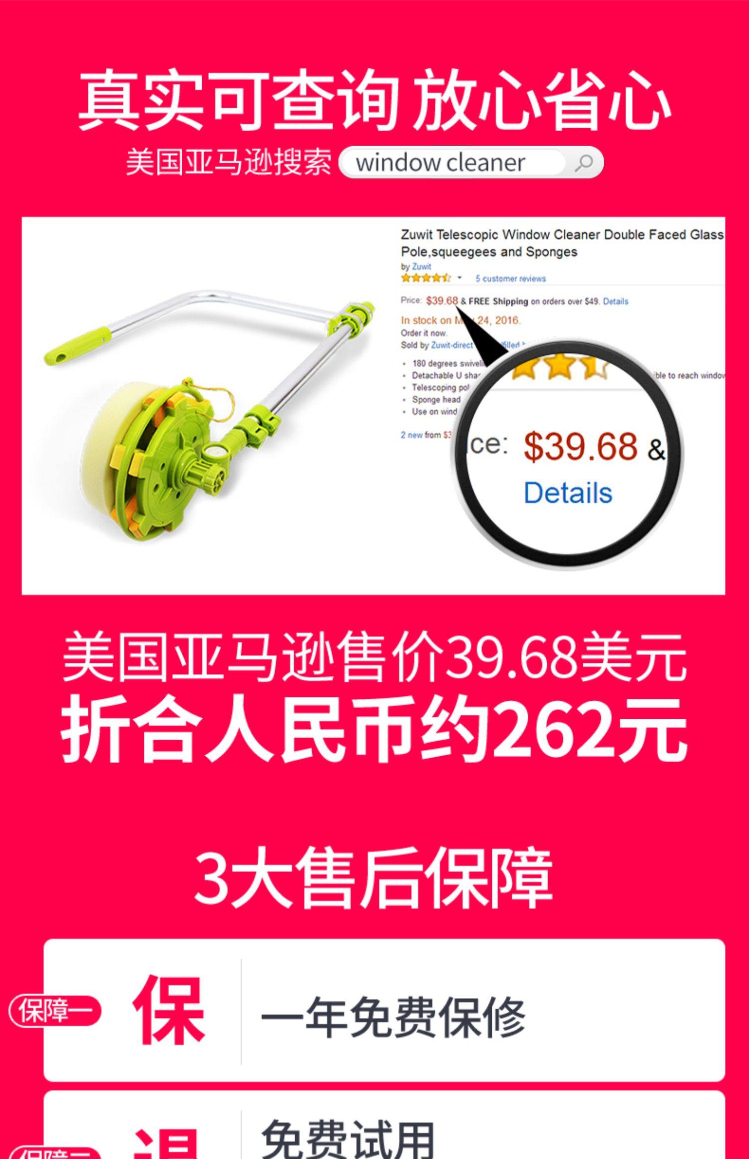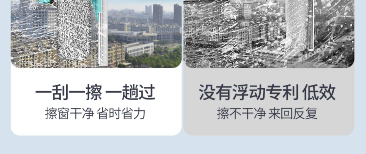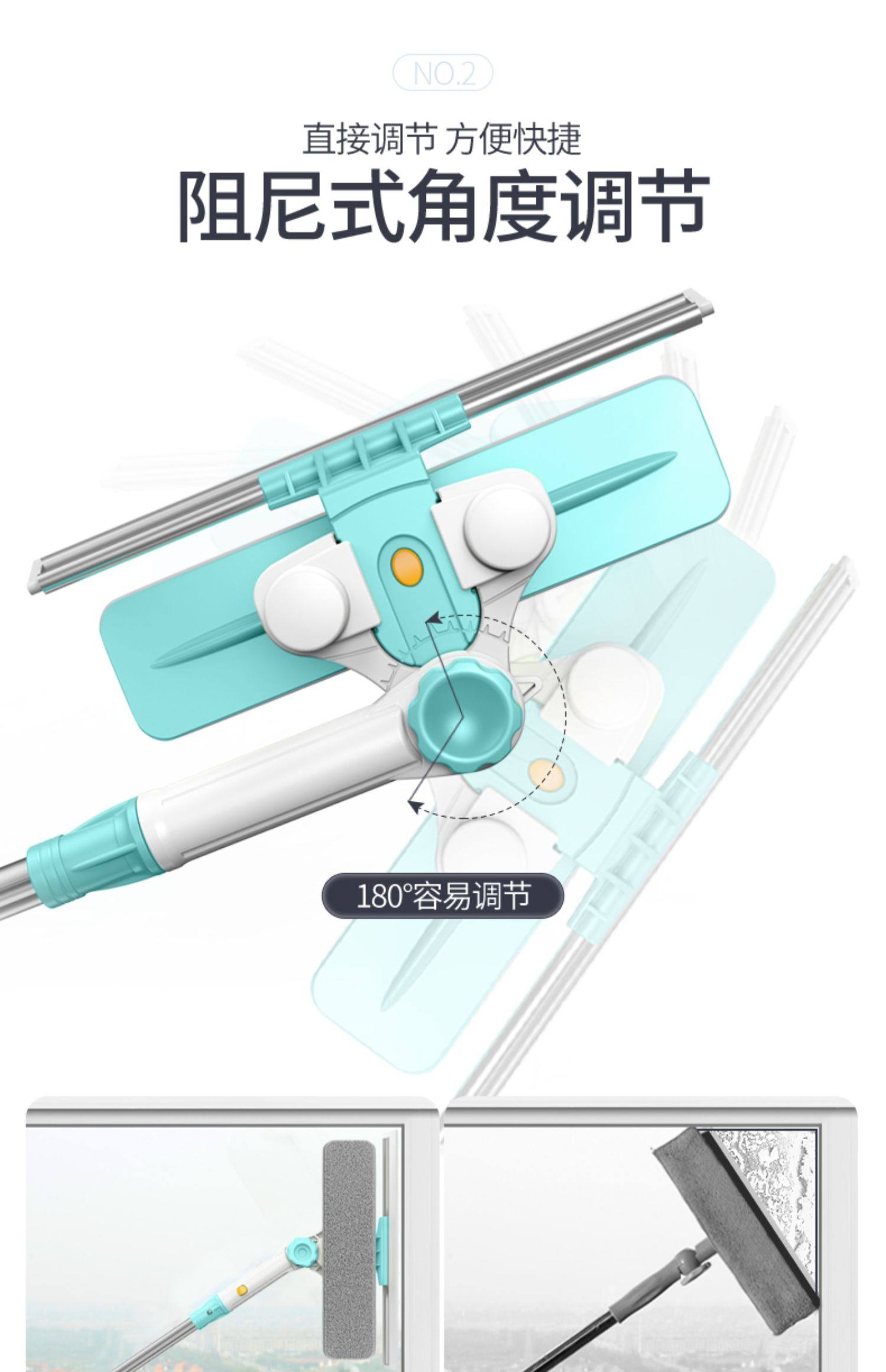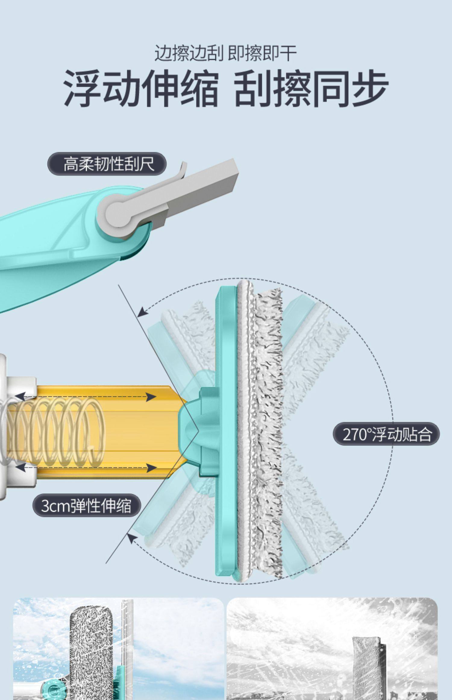 加长伸缩杆,万向旋转,擦窗更省力,刮擦合一,无死角清洁,ABS工程塑料,纤维拖布,一擦一刮,焕然一新。【破损包赔】