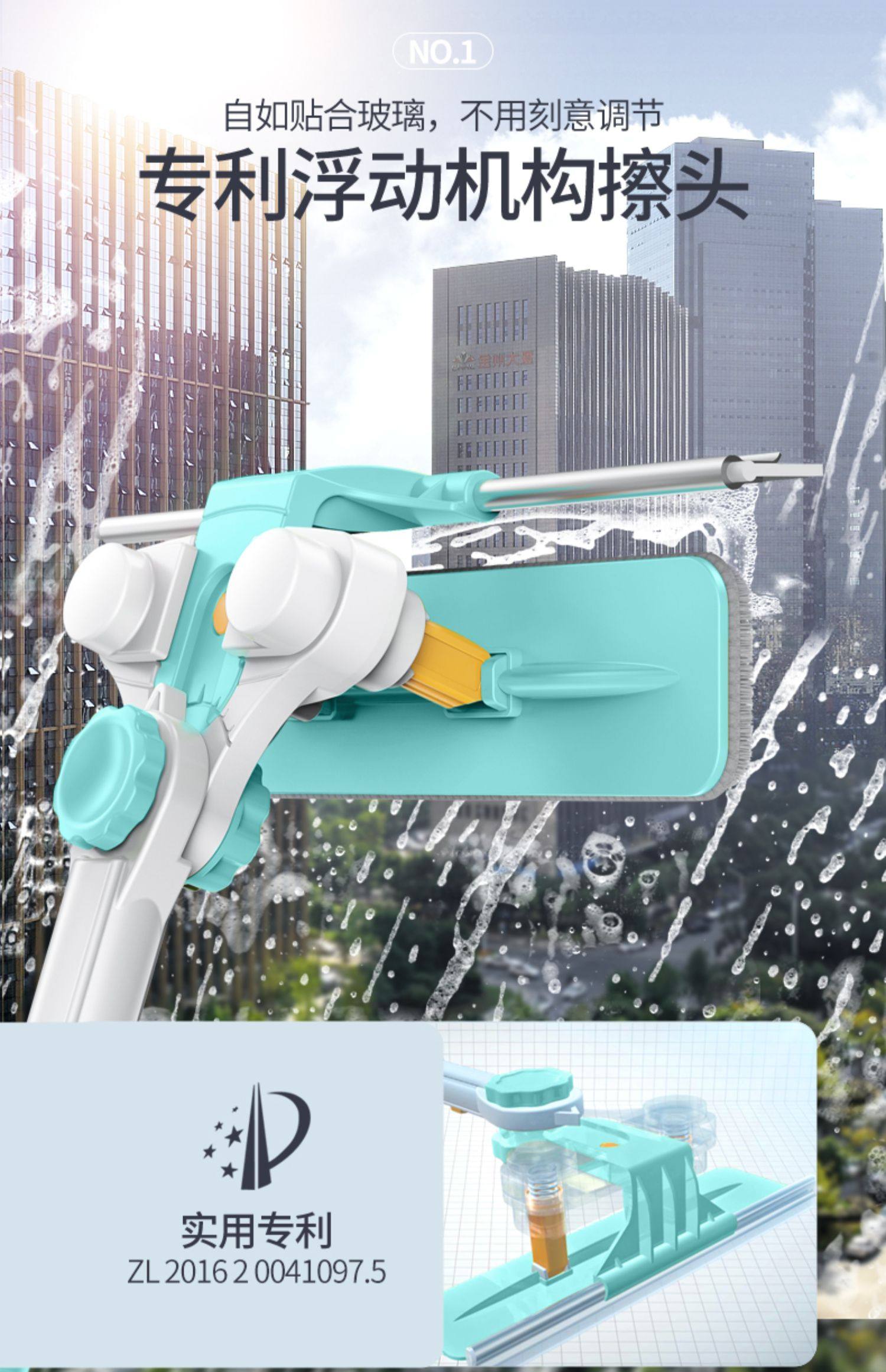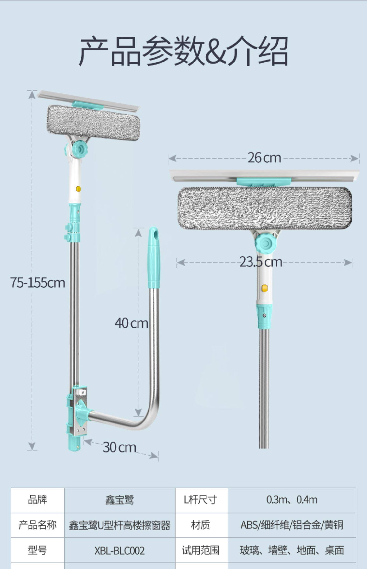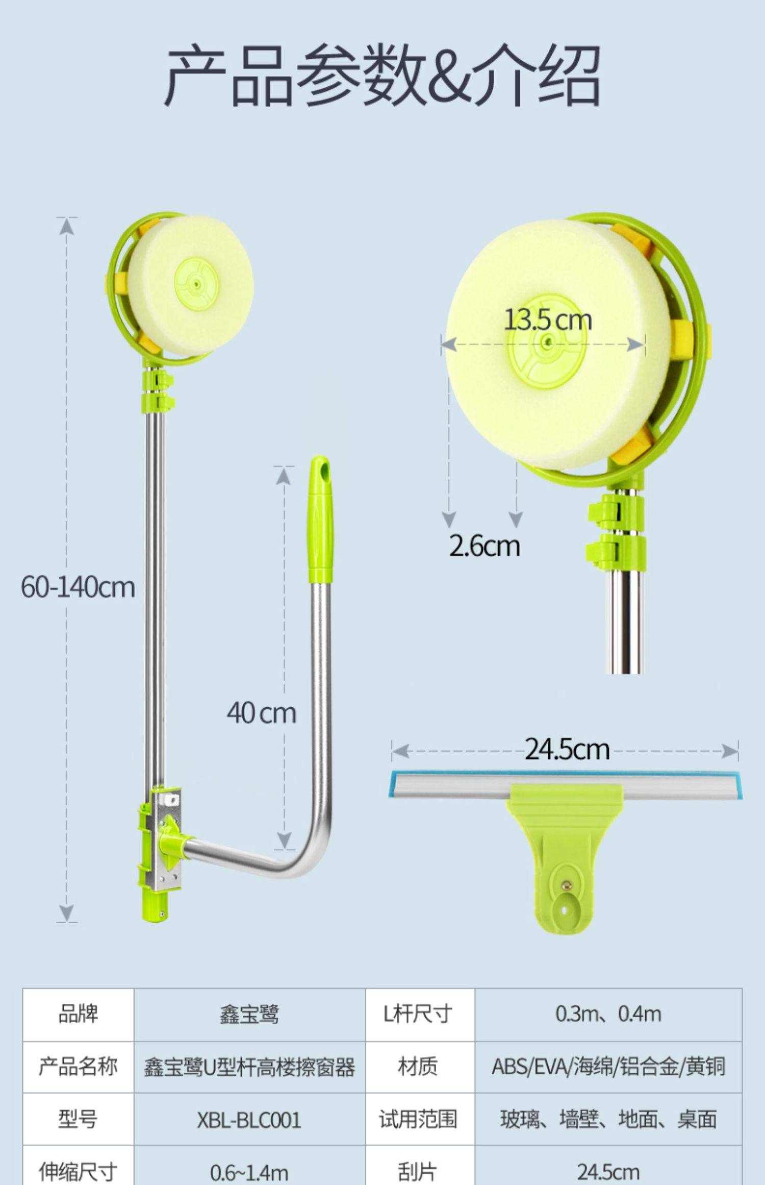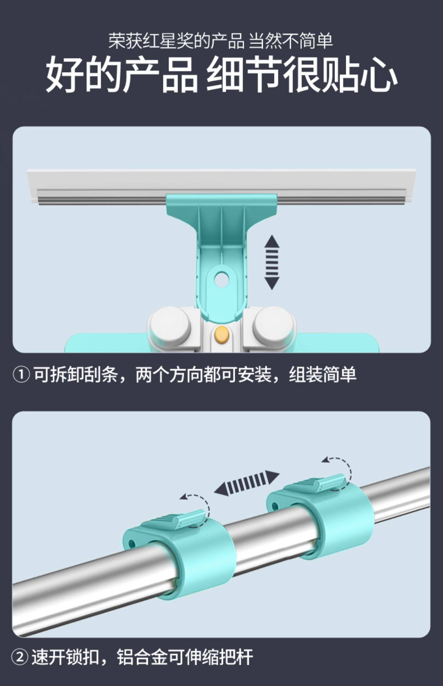 加长伸缩杆,万向旋转,擦窗更省力,刮擦合一,无死角清洁,ABS工程塑料,纤维拖布,一擦一刮,焕然一新。【破损包赔】