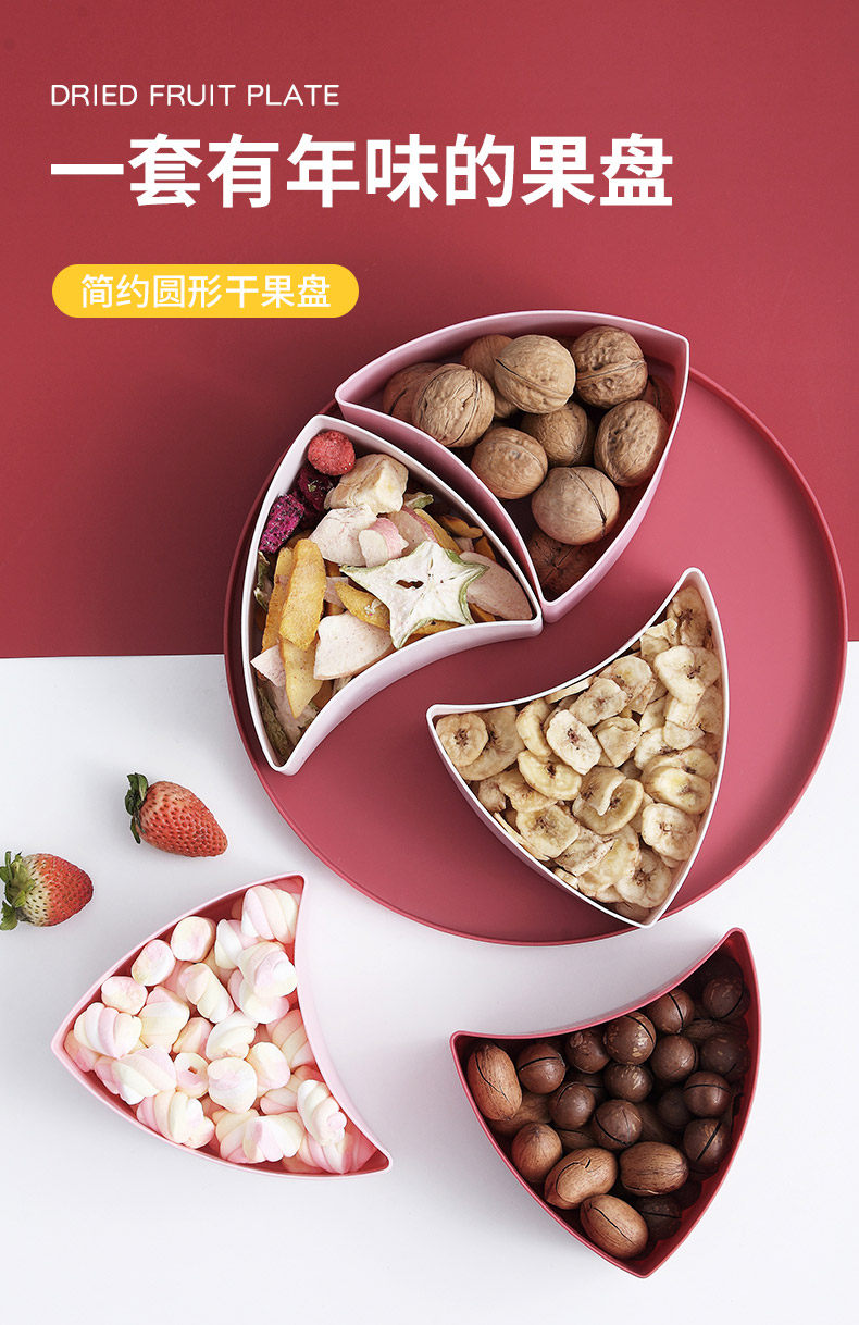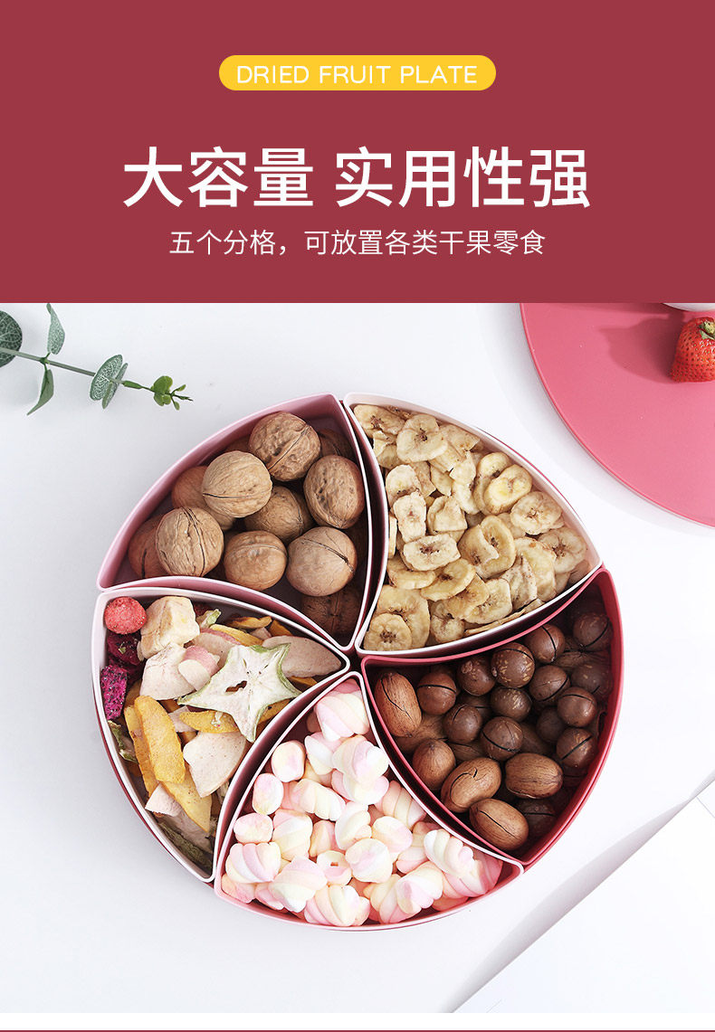 水果盘创意现代,客厅茶几分格带盖,瓜子盘干果盘,家用零食糖果收纳盒