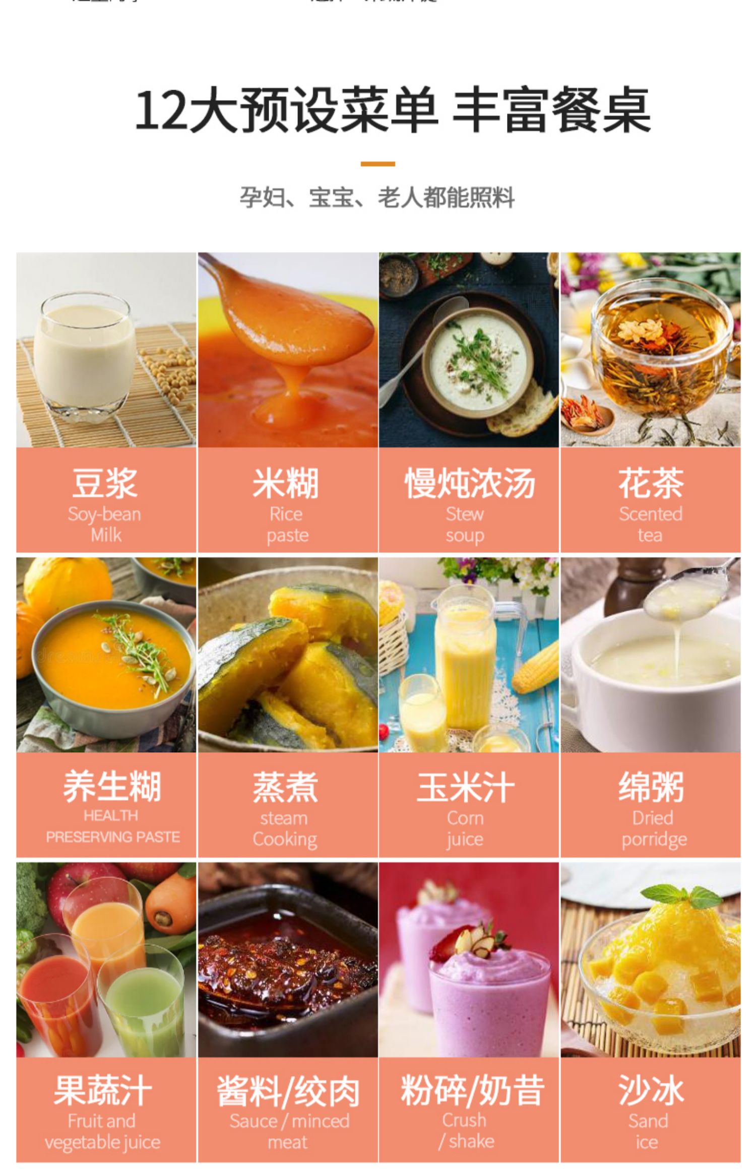 【现狂欢价仅需199!】3C强制认证,8叶钢刀超高转速,碎骨毫无压力,细腻无渣,营养鲜存!升级可蒸煮,自动清洗,24小时预约,14大功能菜单,一机顶替厨房多种电器!【赠运费险】