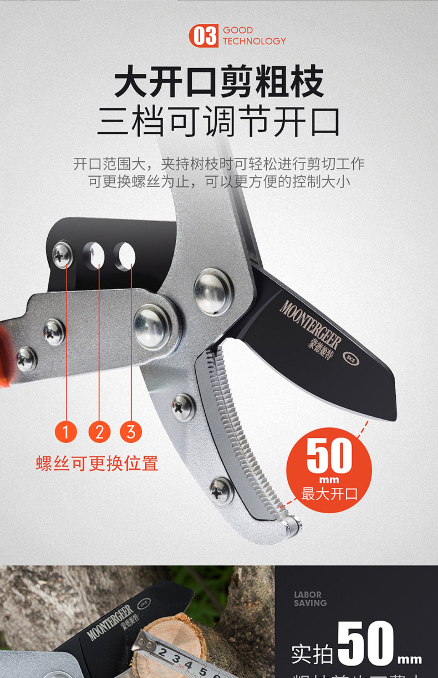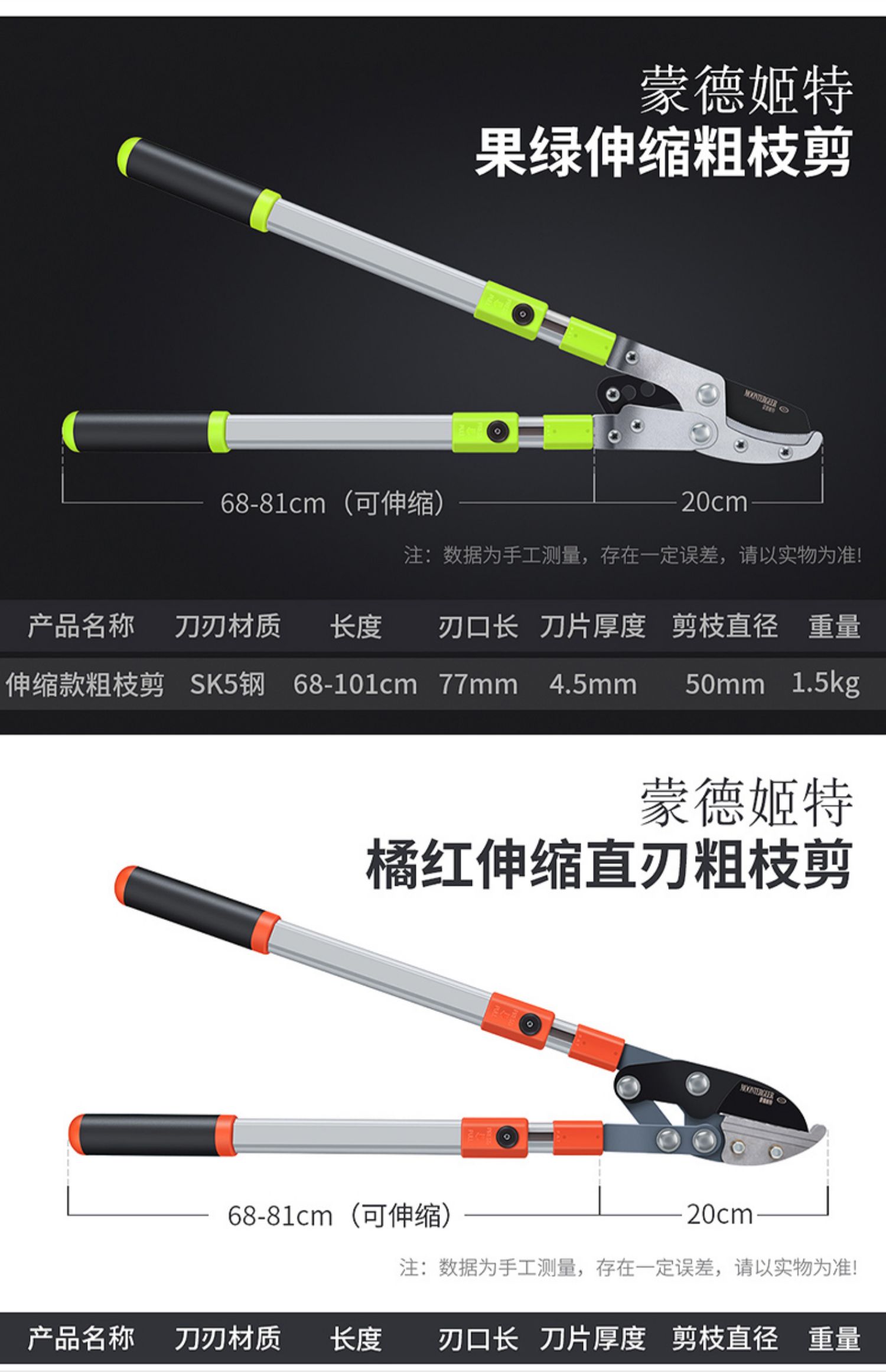 采用合金钢材制作,SK5刀头,锋利坚韧轻便,防滑手柄,持久耐用,新设计安全锁扣,轻松体验一剪没快感,修剪园林好帮手【赠运费险】