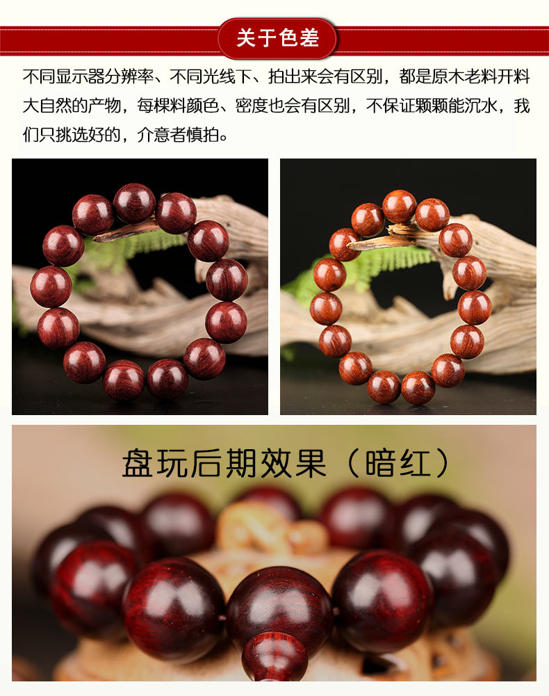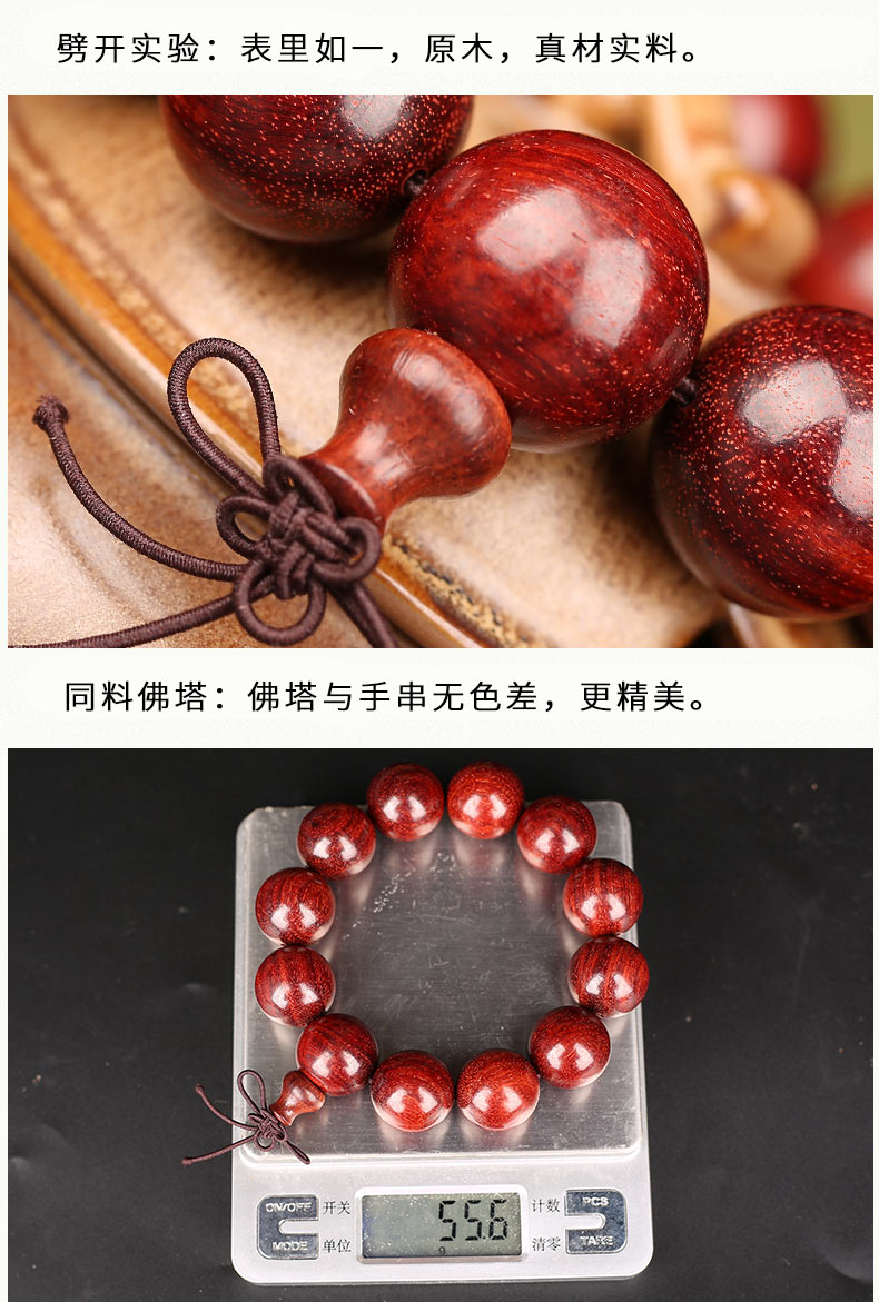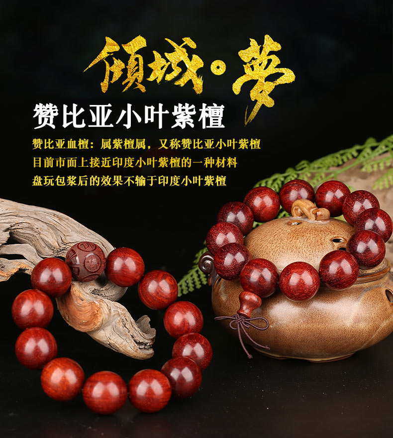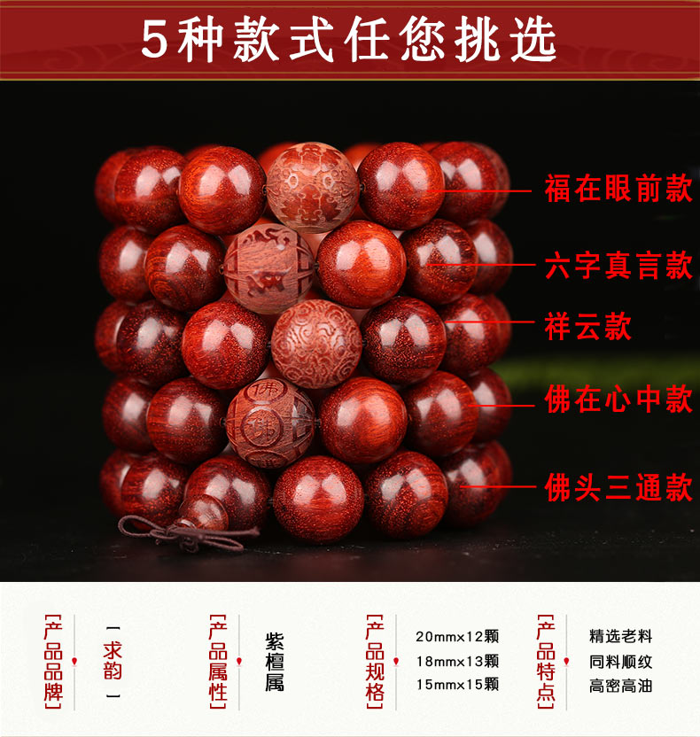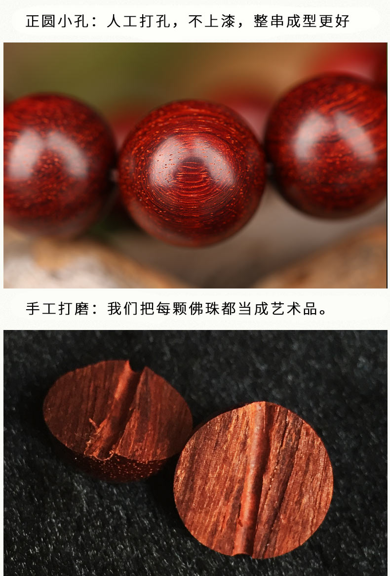 【多规格】选用野生林小叶紫檀成料,手工打磨,真材实料,密度更高,内部油性十分充足,权威鉴定,正品保障!高端大气上档次,是首饰中的精品!