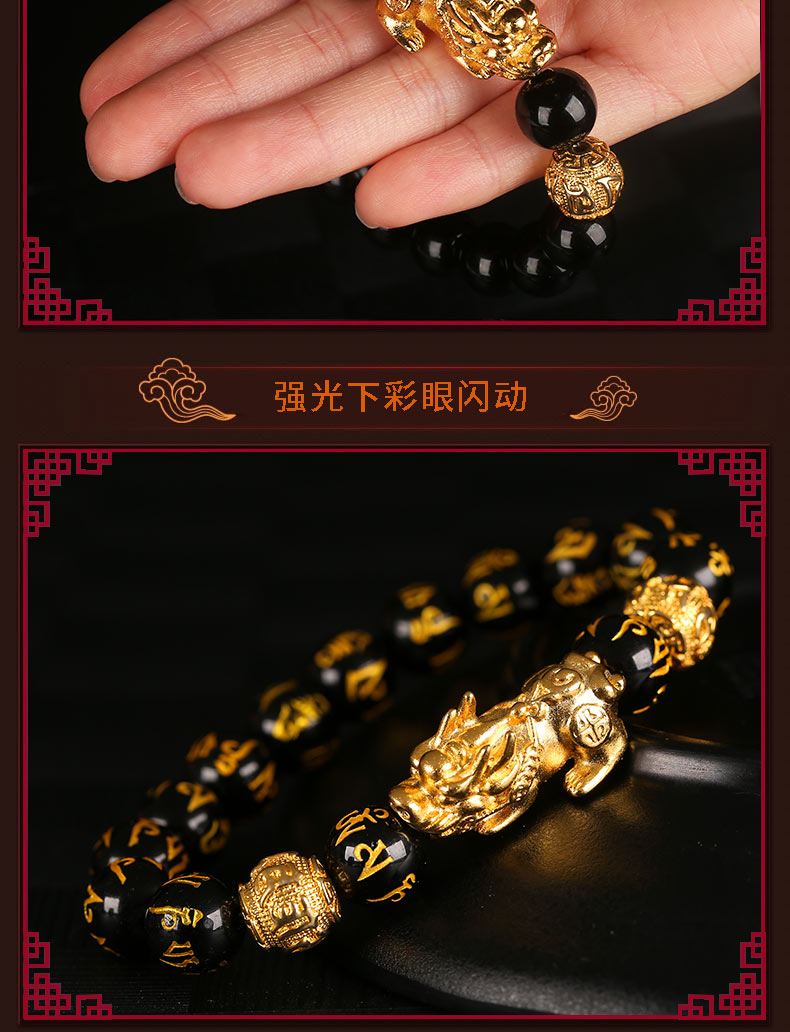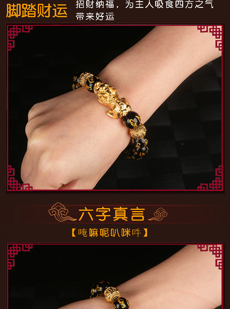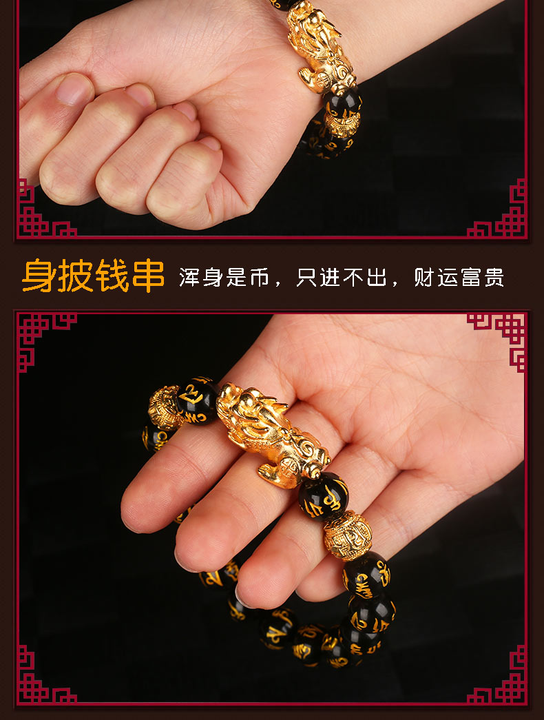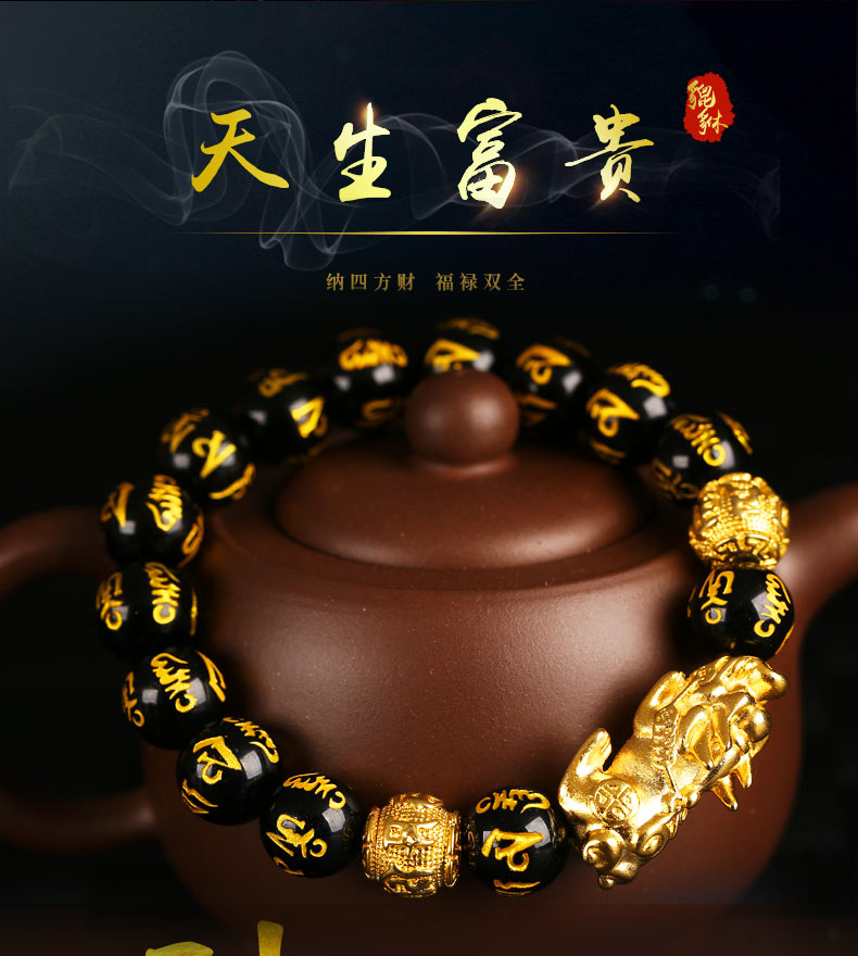 财源貔貅,优质黑曜石,沙金材质,招财纳福,颜色逼近黄金,为主人吸食四方之气带来好运,六字真言,身披钱串,吸金大嘴,容财大肚,镇宅巨足,送礼送祝福!