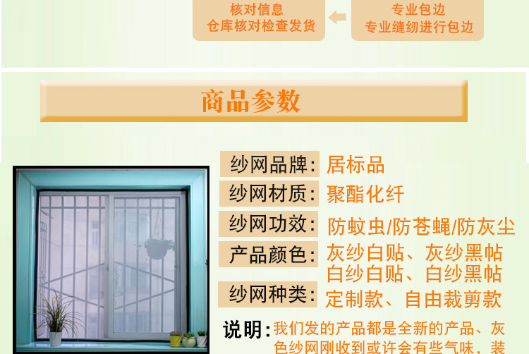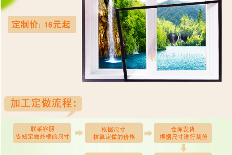 【定制免加工费】定做家用简易防蚊纱窗网,免加工费,加密纱网,环保无味,耐老化性,无痕安装,精致加工,提高隐形!防蚊虫、防苍蝇、防灰尘,经典黑白颜色可选!【破损补寄】