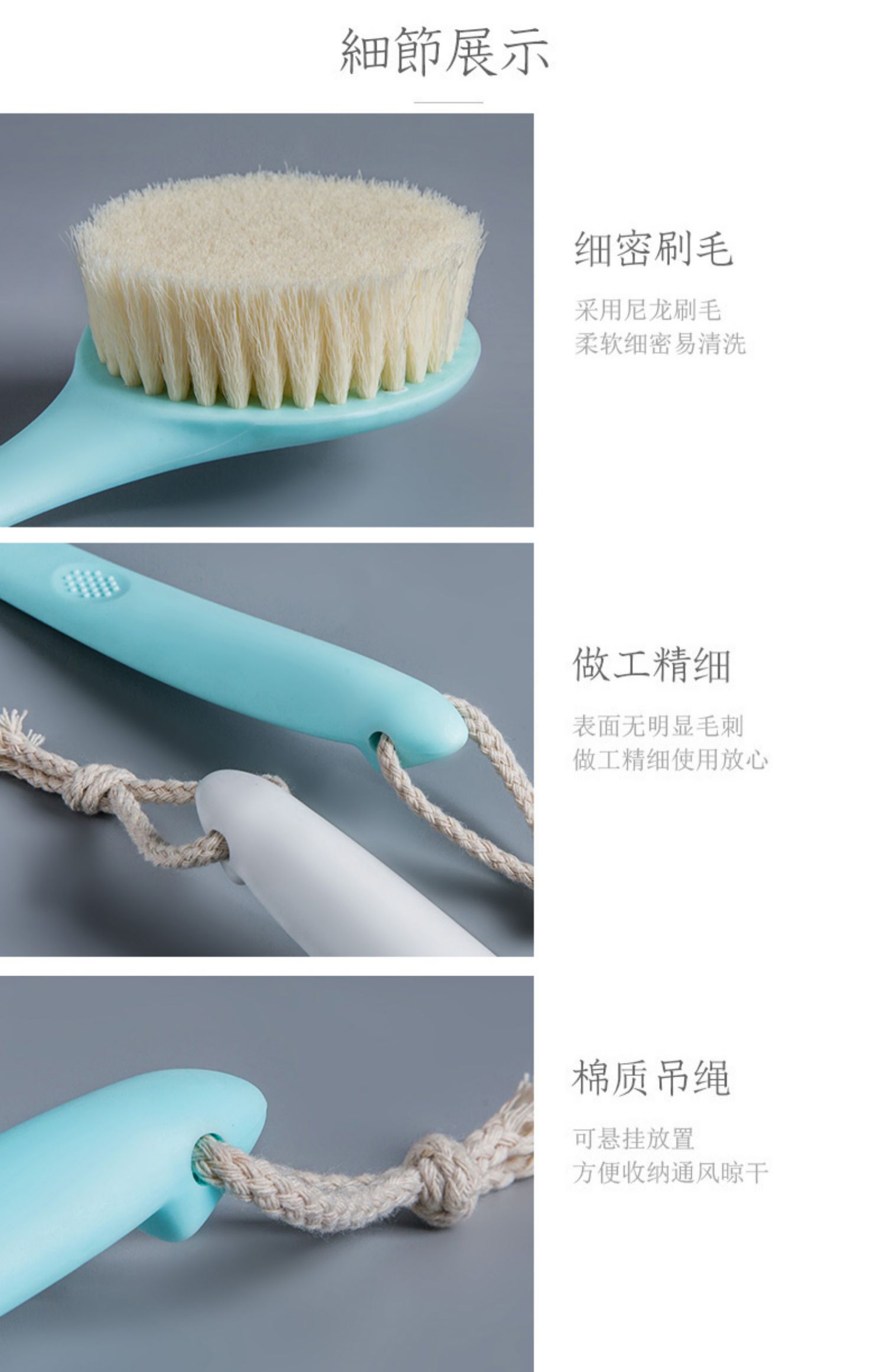 【居家必备】搓澡强力不求人,深层清洁,柔密刷毛,亲肤不刺激,加长手柄,从此搓背不求人,缓解疲劳,促进血液循环,一款可以按摩的浴刷!