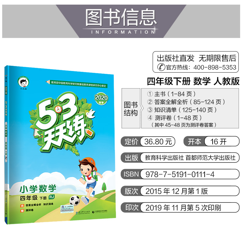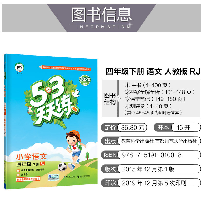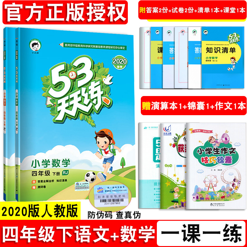 【实发12种!送大礼包!】53天天练四年级下册语文数学人教版RJ共2本,小学四年级下册同步练习册