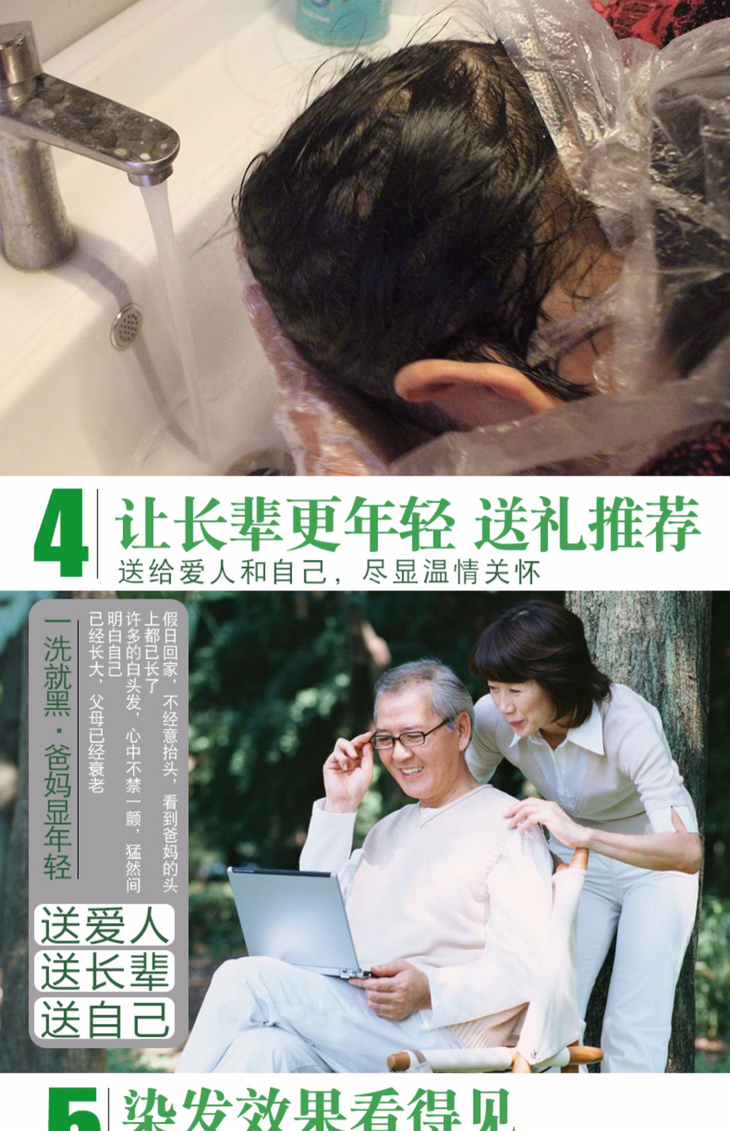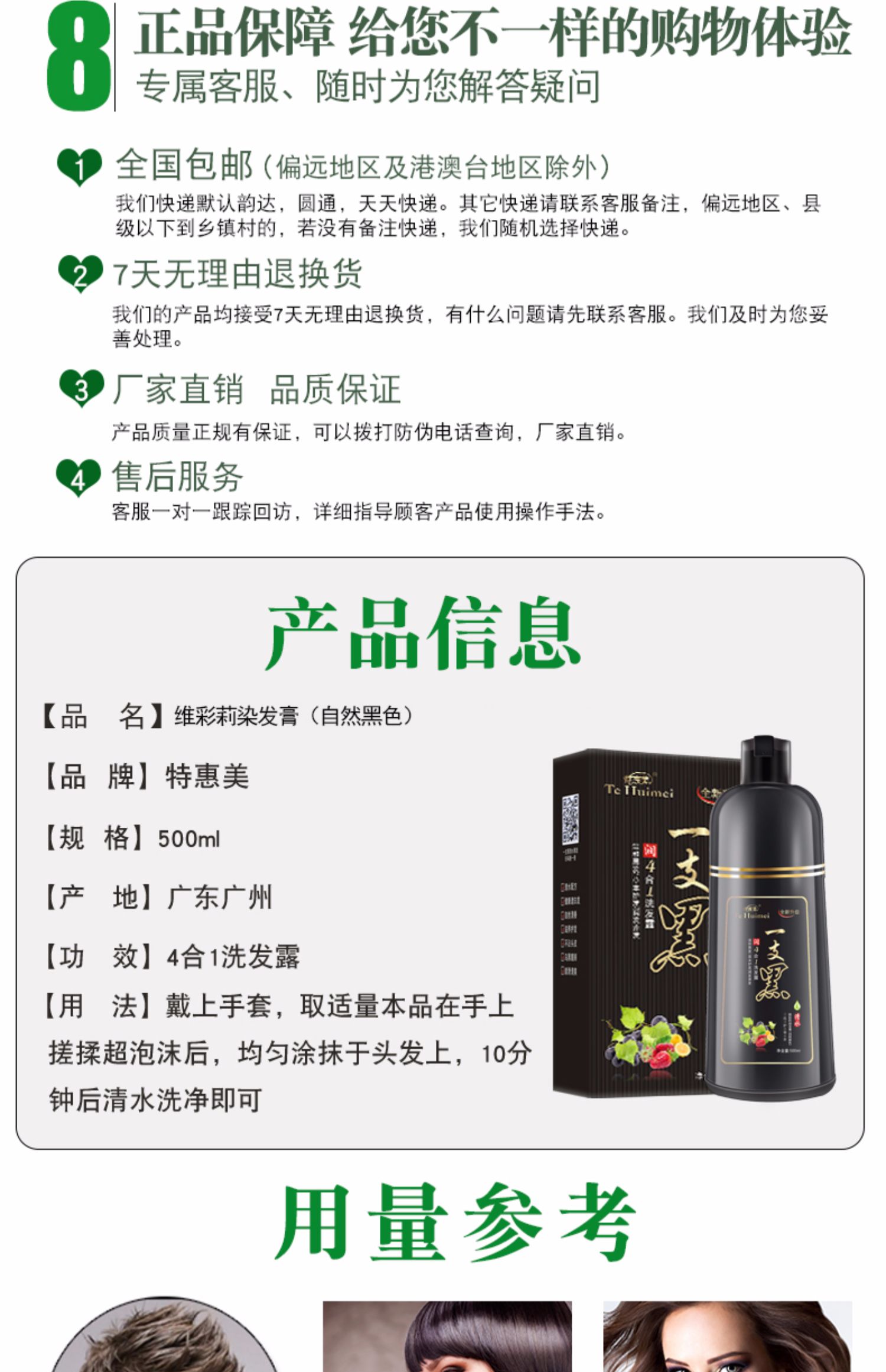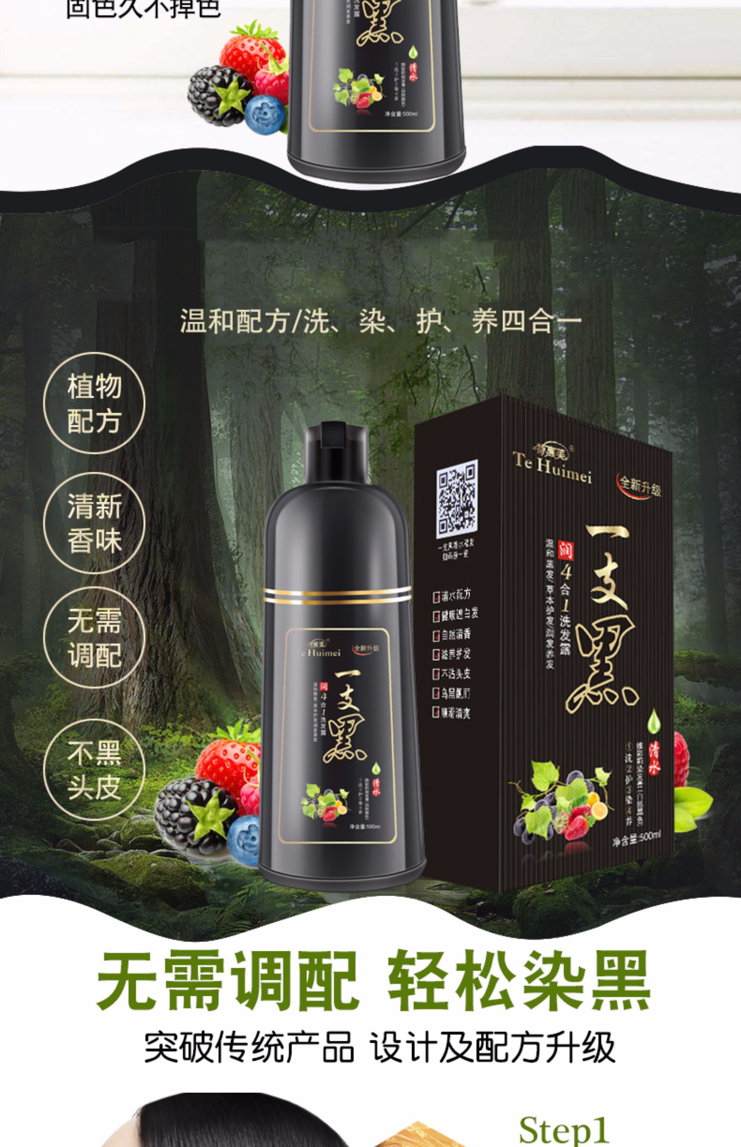 500ml加量升级版,染发剂植物一洗黑洗发水纯自然黑色染发膏天然无刺激一支黑绿色配方,只黑头发不黑头皮,健康黑发加量升级版