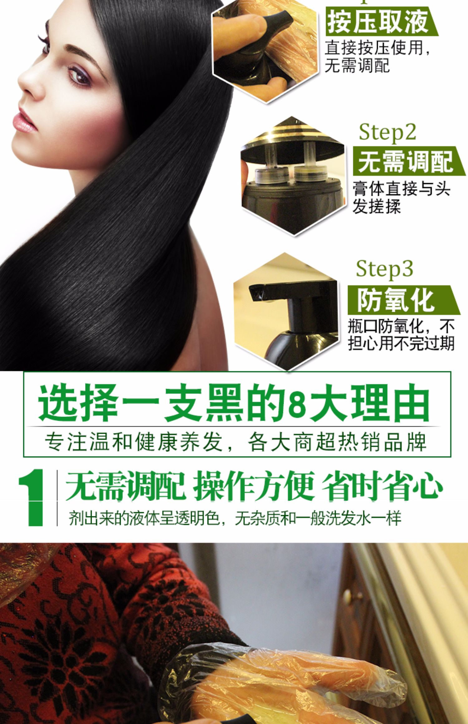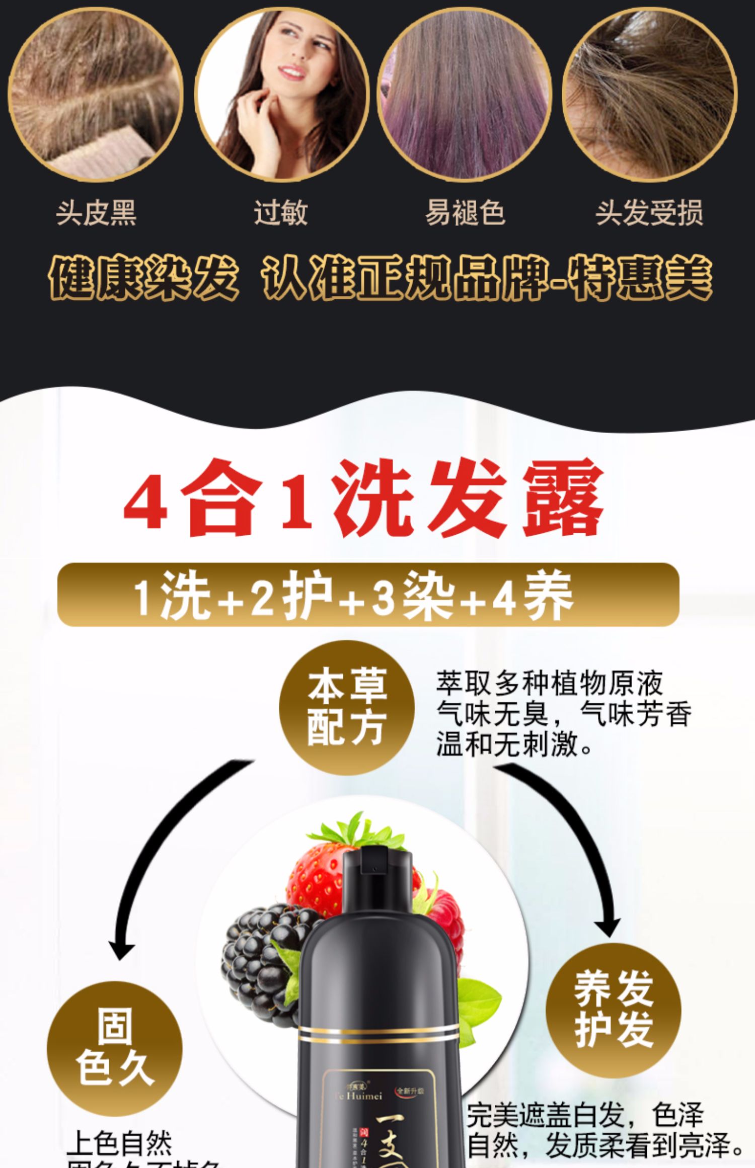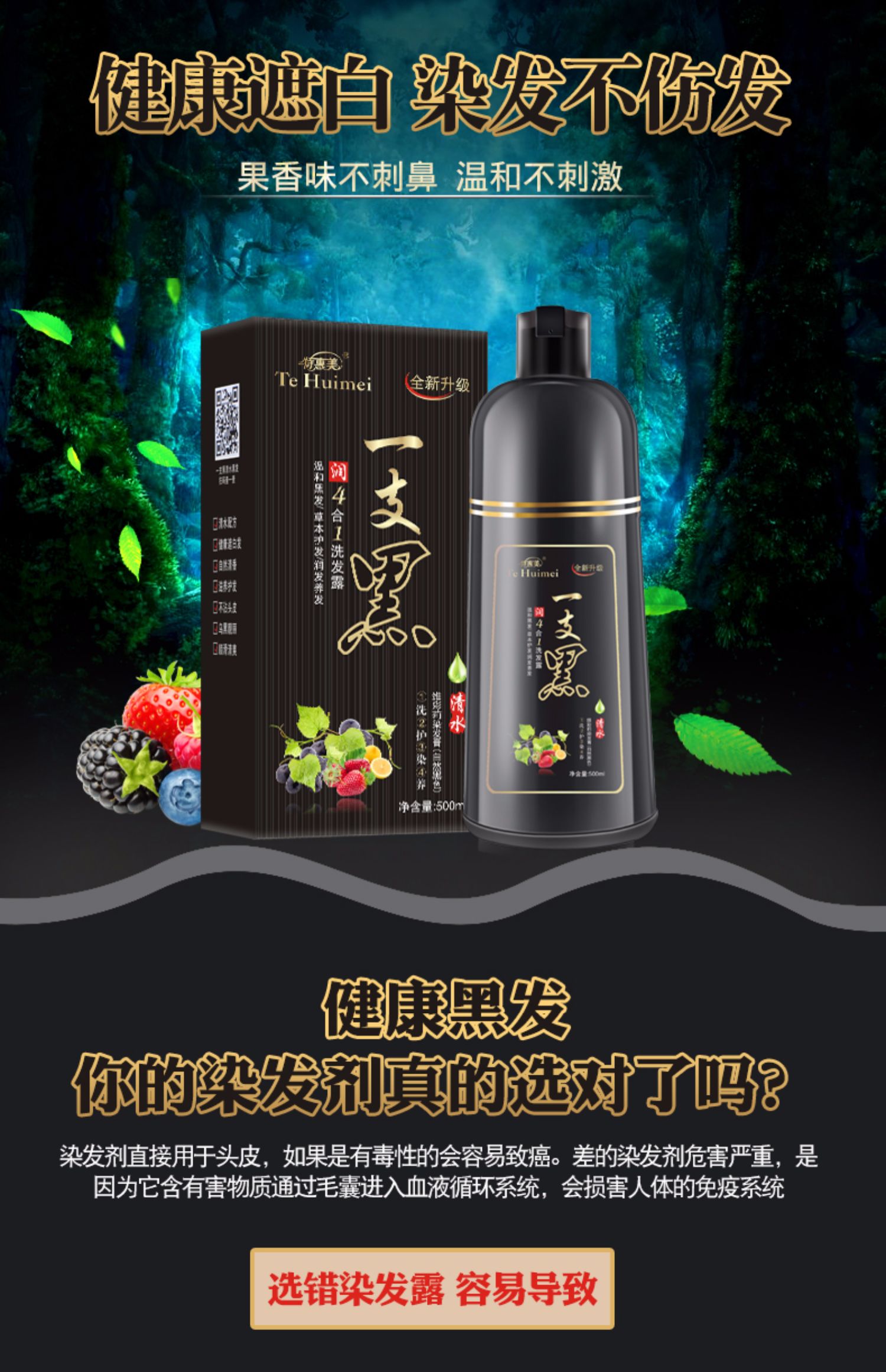 500ml加量升级版,染发剂植物一洗黑洗发水纯自然黑色染发膏天然无刺激一支黑绿色配方,只黑头发不黑头皮,健康黑发加量升级版