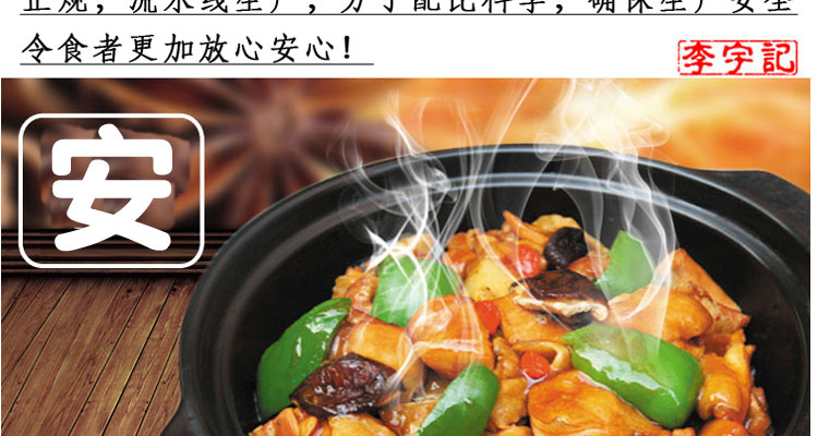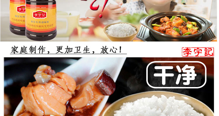 李宇记黄焖鸡酱料1000g,配方含20多种天然香辛料,天然酱香,肉更嫩,咸淡香宜,鲜又香,渠道正规,更放心,原料天然,QS认证