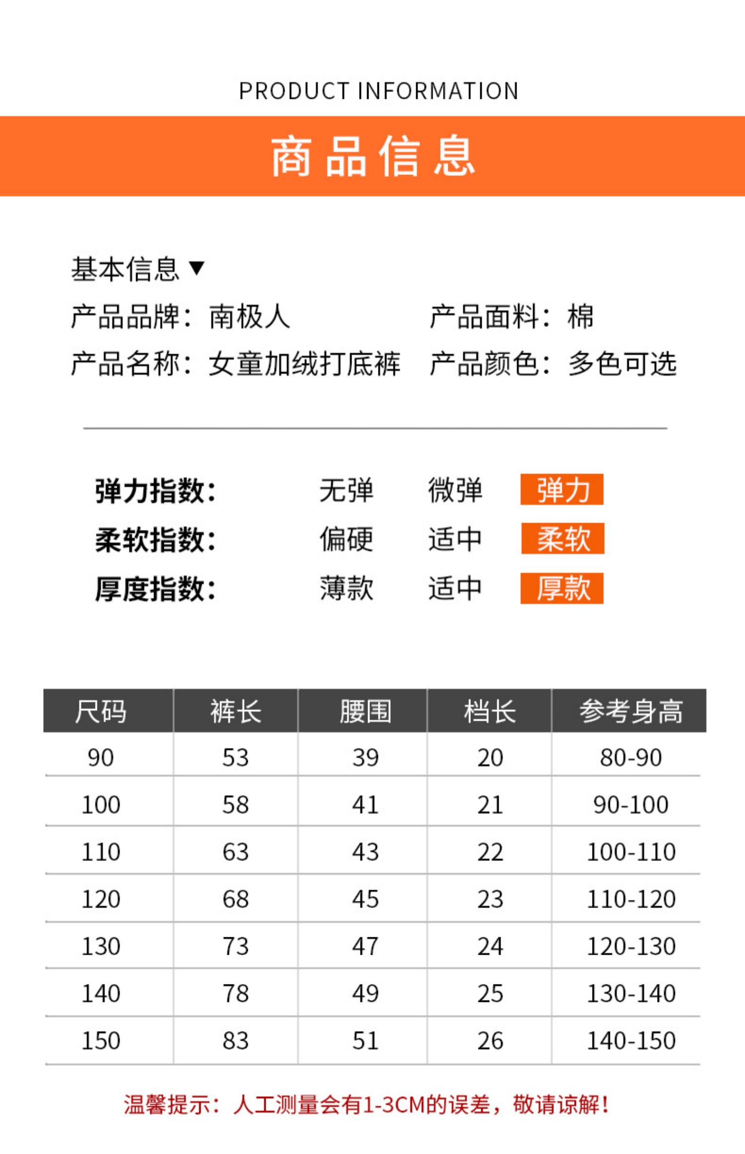采用精梳棉面料,加绒加厚,贴身保暖,可爱印花,打底百搭,不起球,不褪色,健康无刺激,买打底裤认准南极人品牌~