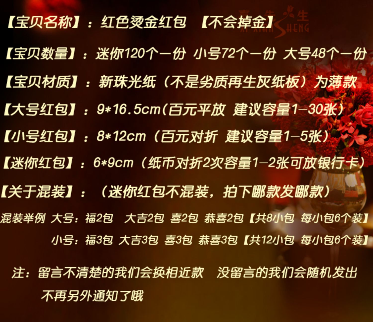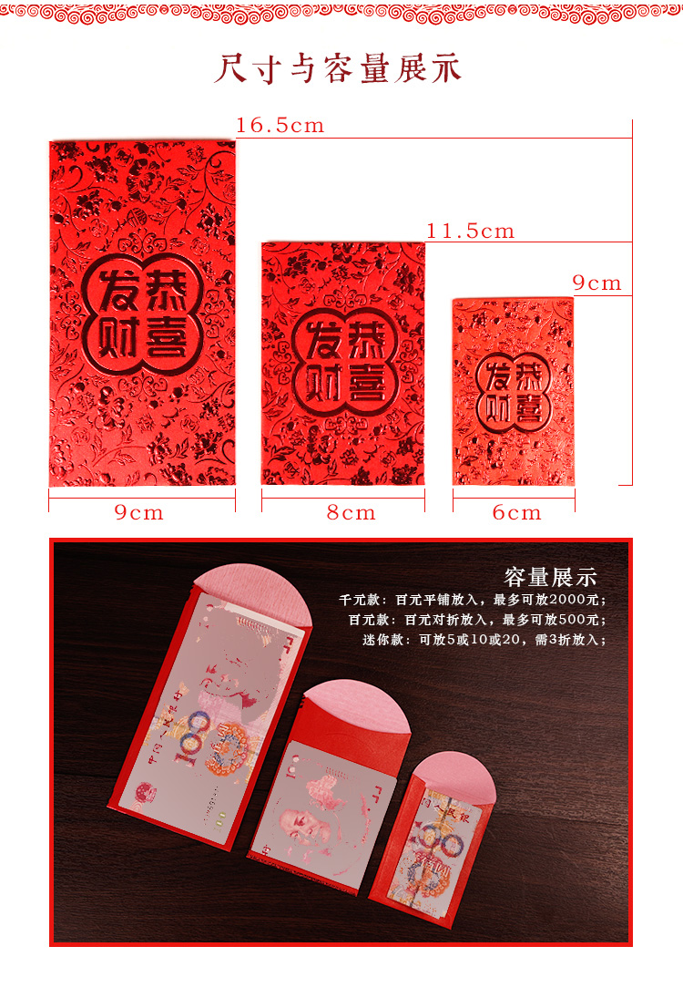 个性创意,百元通用红包,不会掉落金粉,不容易破损,用料考究,纸质优良,佳节新年婚庆用品,居家必备哦!【赠运费险】