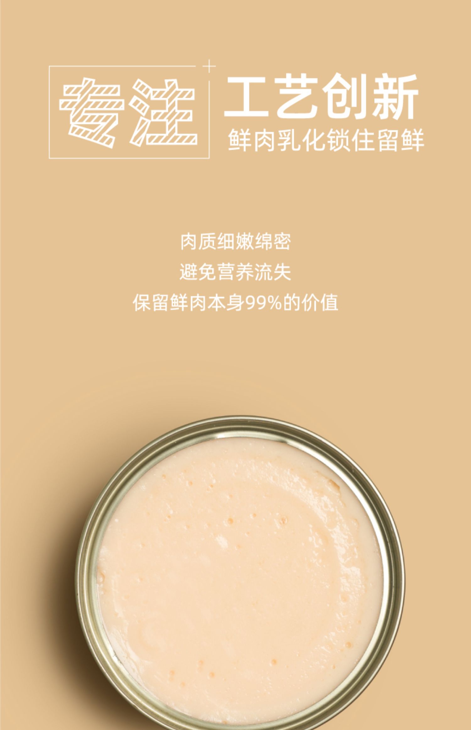 亚宠展力荐品牌,全新升级款,采用特殊鲜肉乳化加工,工艺锁住留鲜,富含多种微量元素,补充水分,营养健康,软软慕斯状,舔食易吸收,猫咪更过瘾。