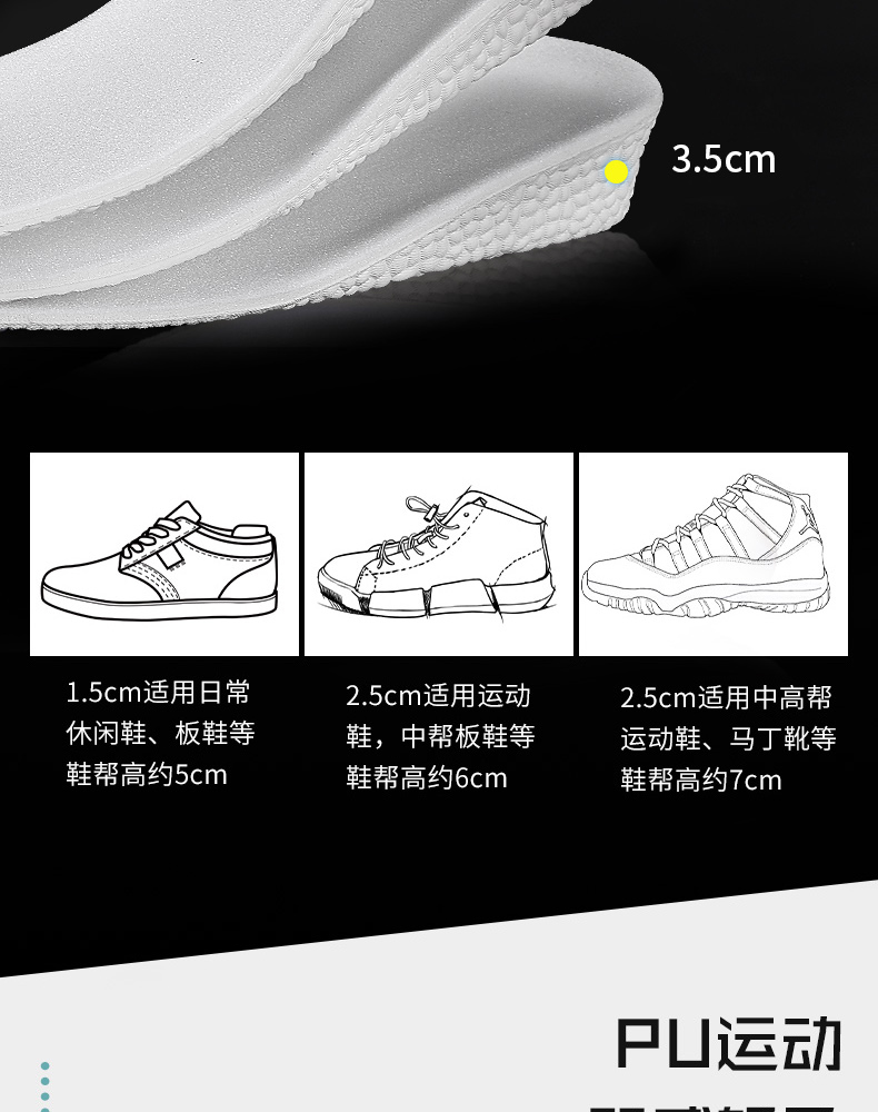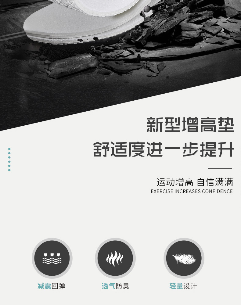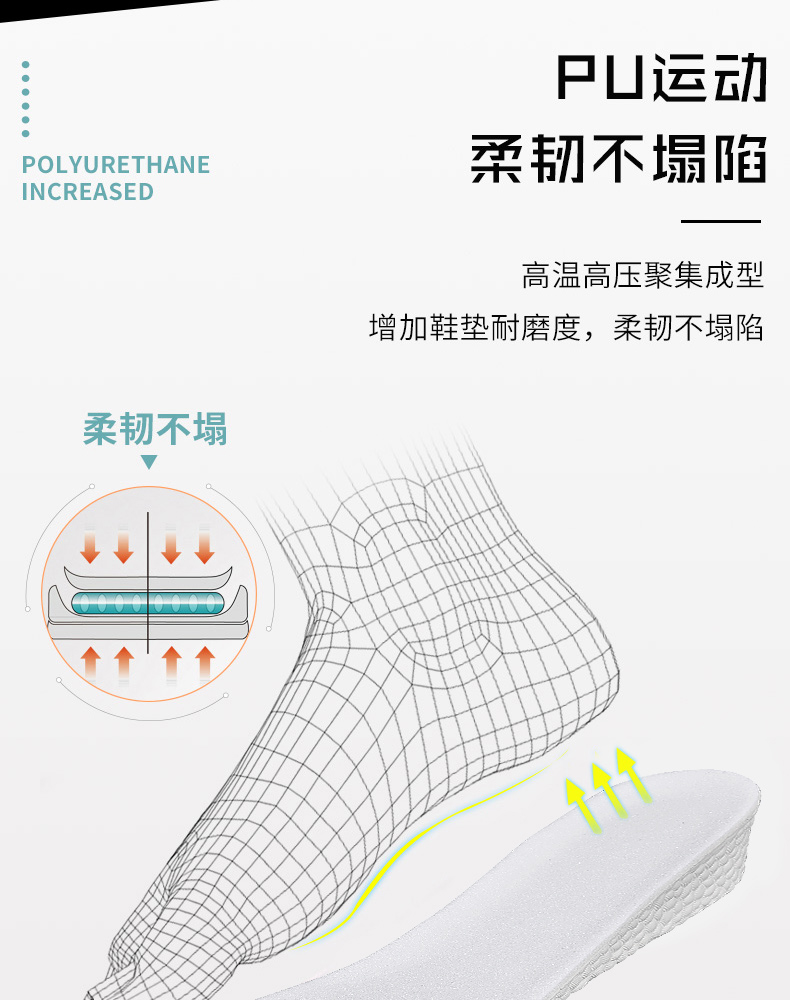 【boost缓震+隐形增高+3种高度】高弹力缓震,运动减震神器,透气舒适,吸汗清爽,新材料轻量设计,柔韧不塌陷【包邮!】