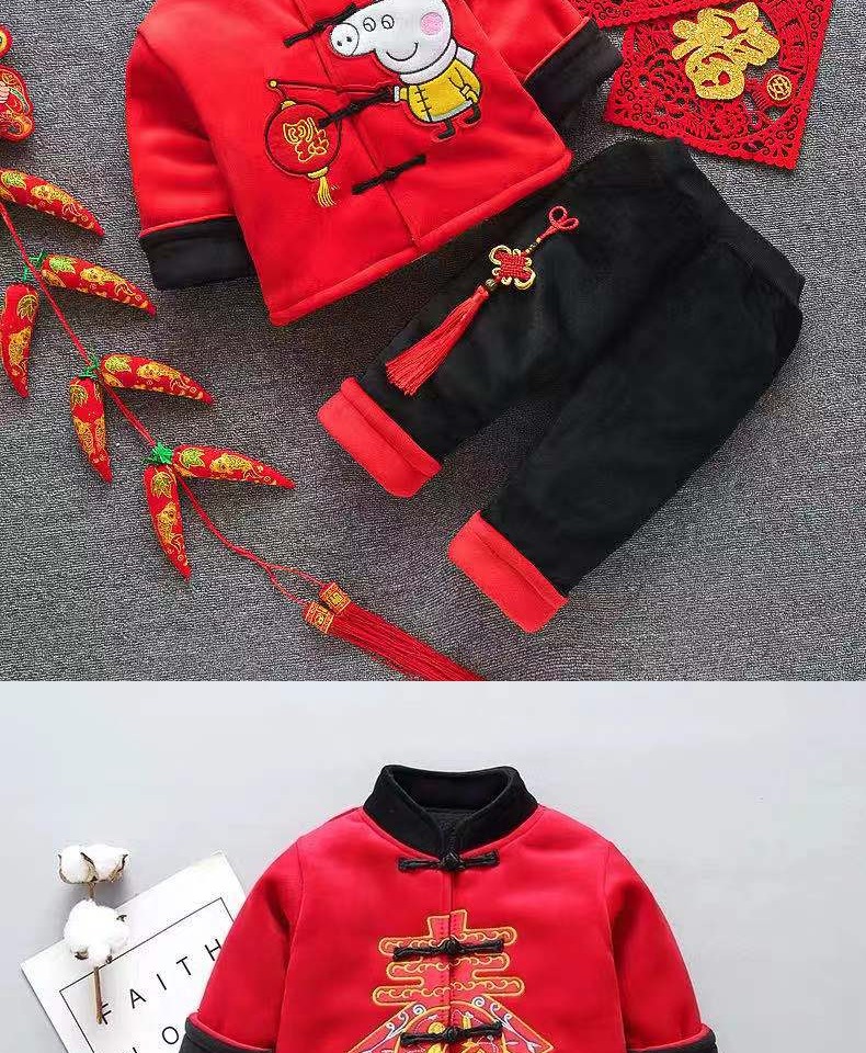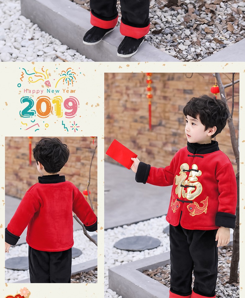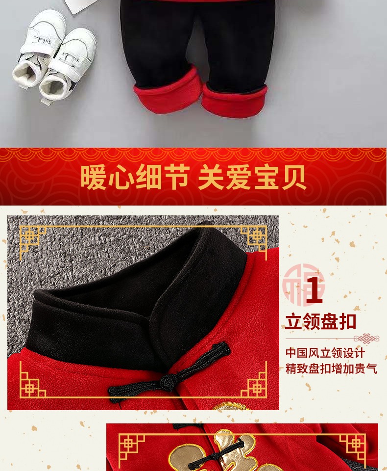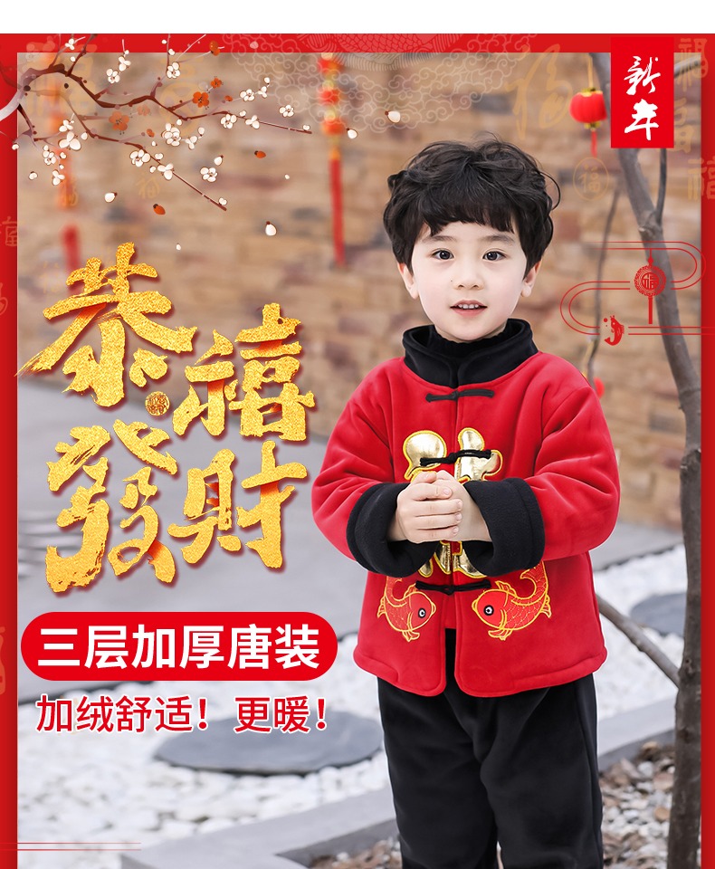 加绒加厚儿童年服套装,优质面料,高密度绒,舒适保暖,呵护肌肤,加绒袖口,蓄热保暖,可爱吉祥如意图案,穿上之后帅帅哒~【赠运费险】
