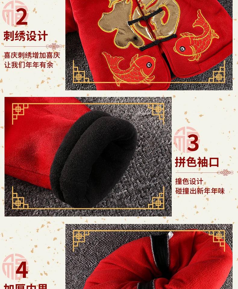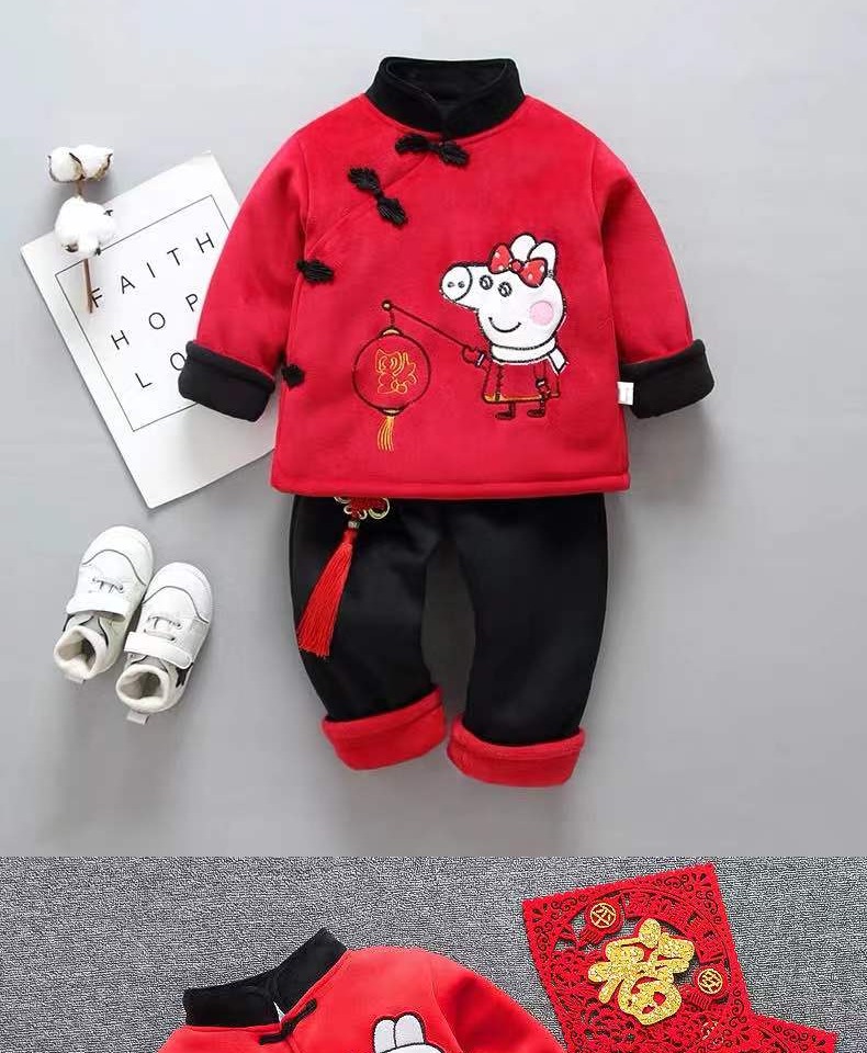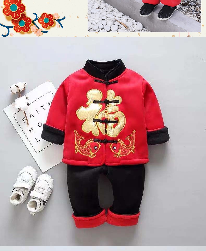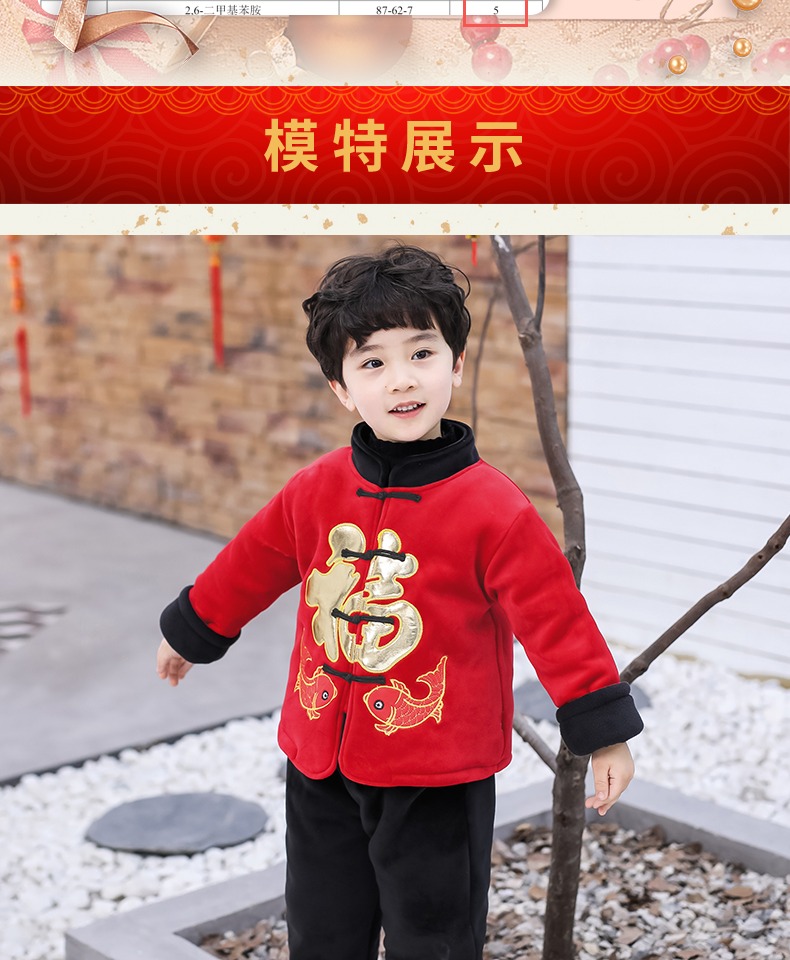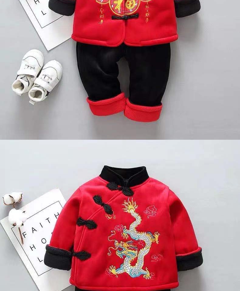 加绒加厚儿童年服套装,优质面料,高密度绒,舒适保暖,呵护肌肤,加绒袖口,蓄热保暖,可爱吉祥如意图案,穿上之后帅帅哒~【赠运费险】