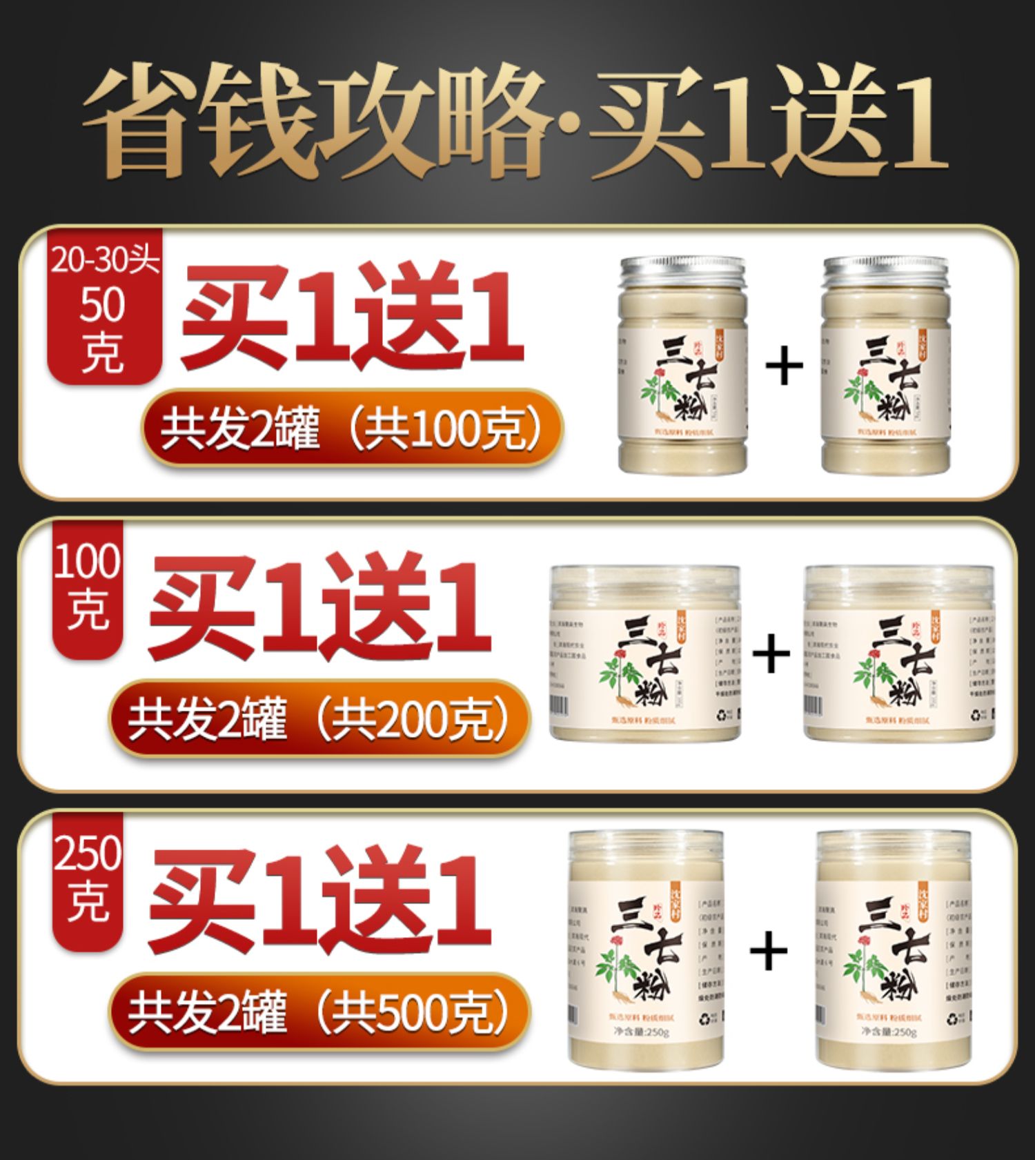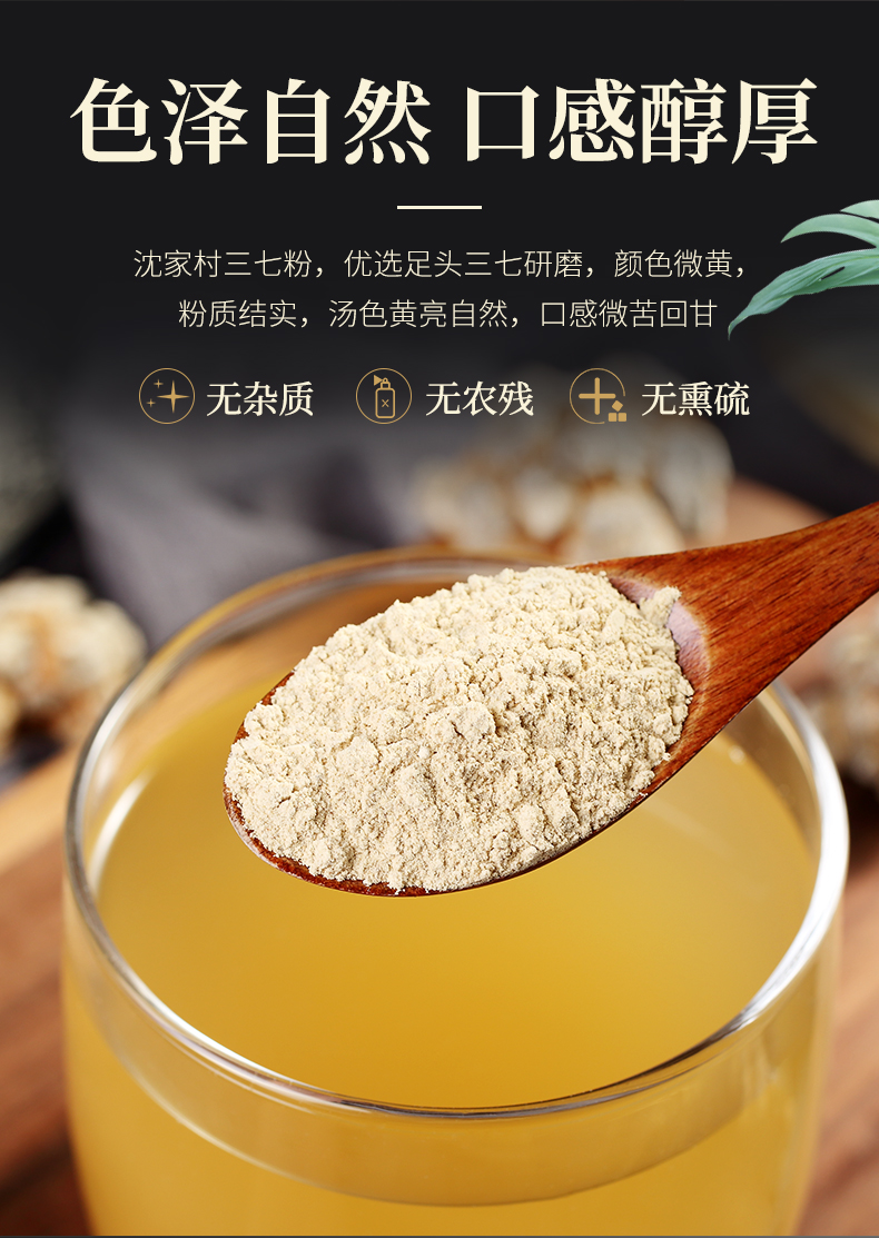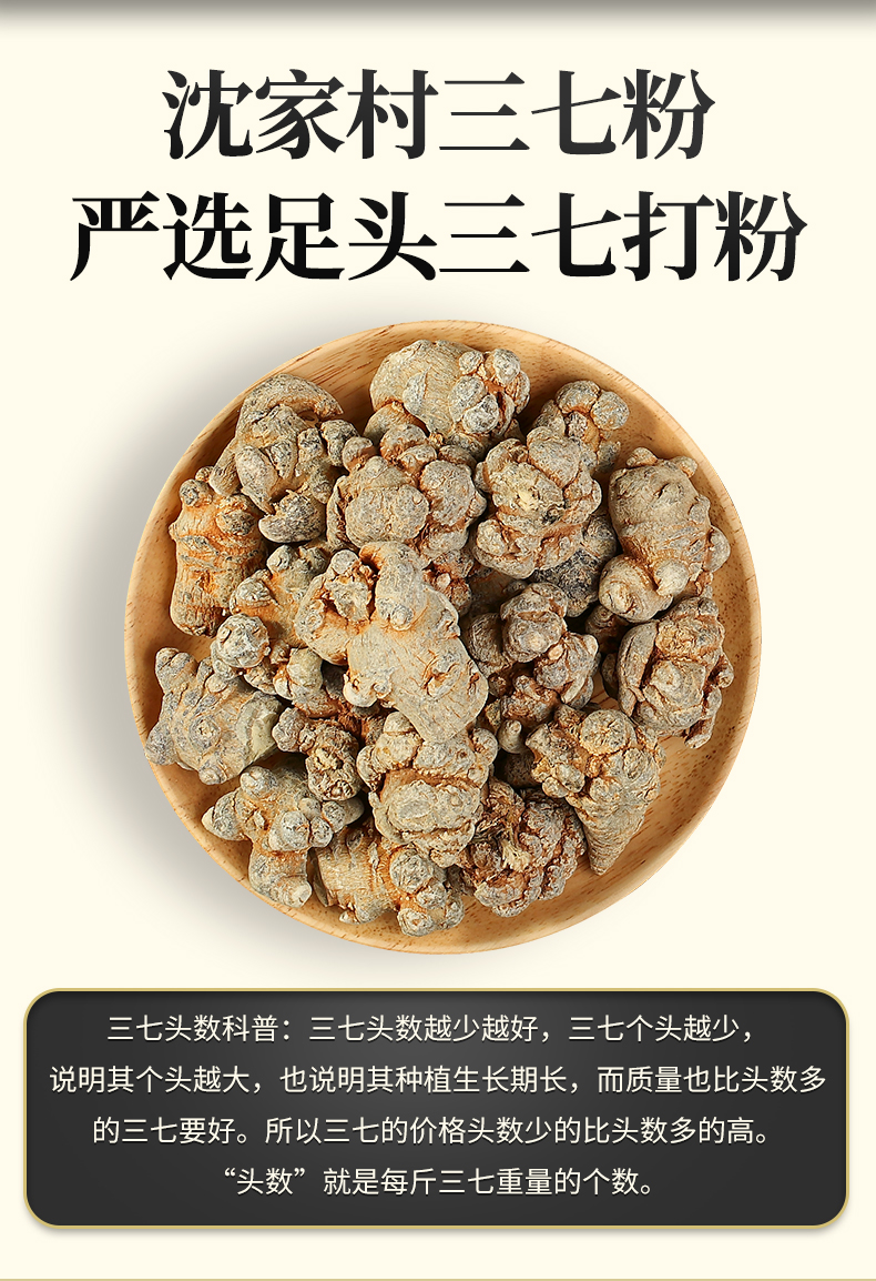 沈家村甄选原料,足头三七,粉质细腻,皂苷丰富,气流粉碎技术,锁住营养,无硫品质,干净安全~【赠运费险】