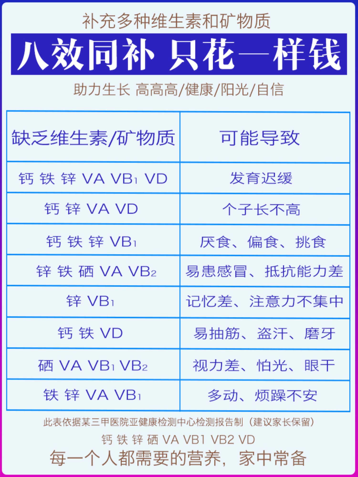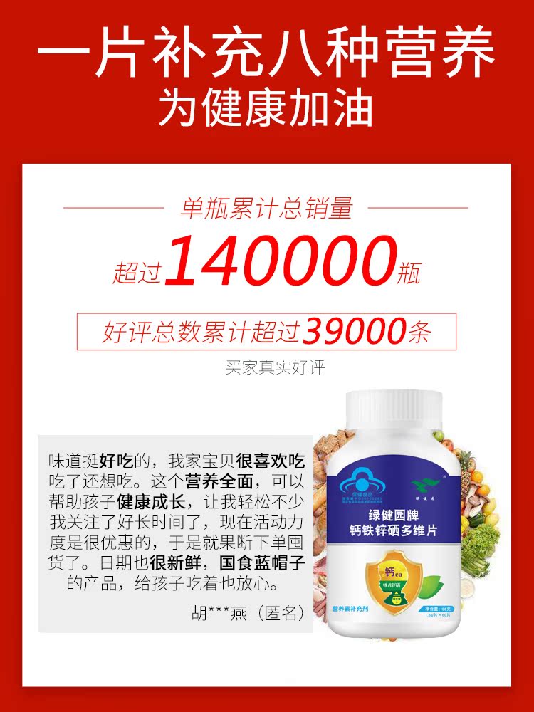 【修正授权品牌】累计突破20w销量,一次补充八种营养,无不适宜人群,钙、铁、锌、钙片是我们都需要的,帮助孩子自然长高,解决体质差挑食,发育缓慢,注意力不集中等成长烦恼!【赠运费险】