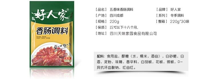 【冬季特卖产品】过年必备,四川香肠调味料,原料上乘,美味健康。在家自己灌腊肠,安全卫生,咸甜适中,品质高,精选优质配料,保留了食材本身的营养和美味!【赠运费险】