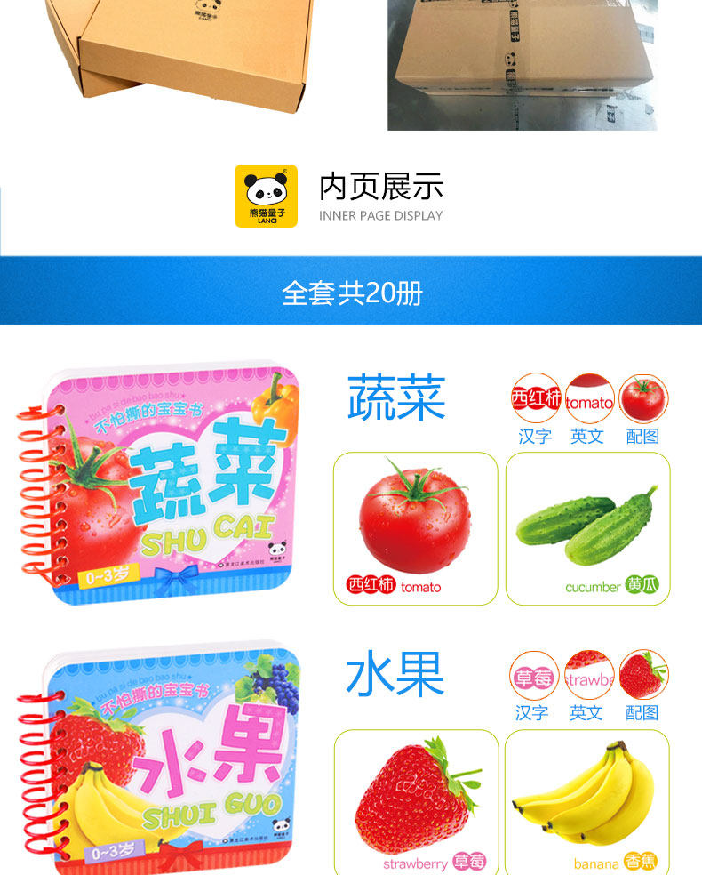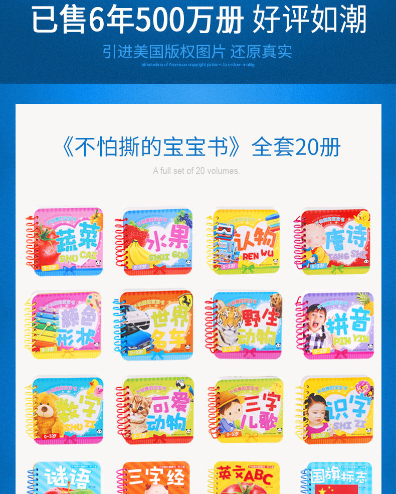 20本婴幼儿童撕不烂早教书卡片