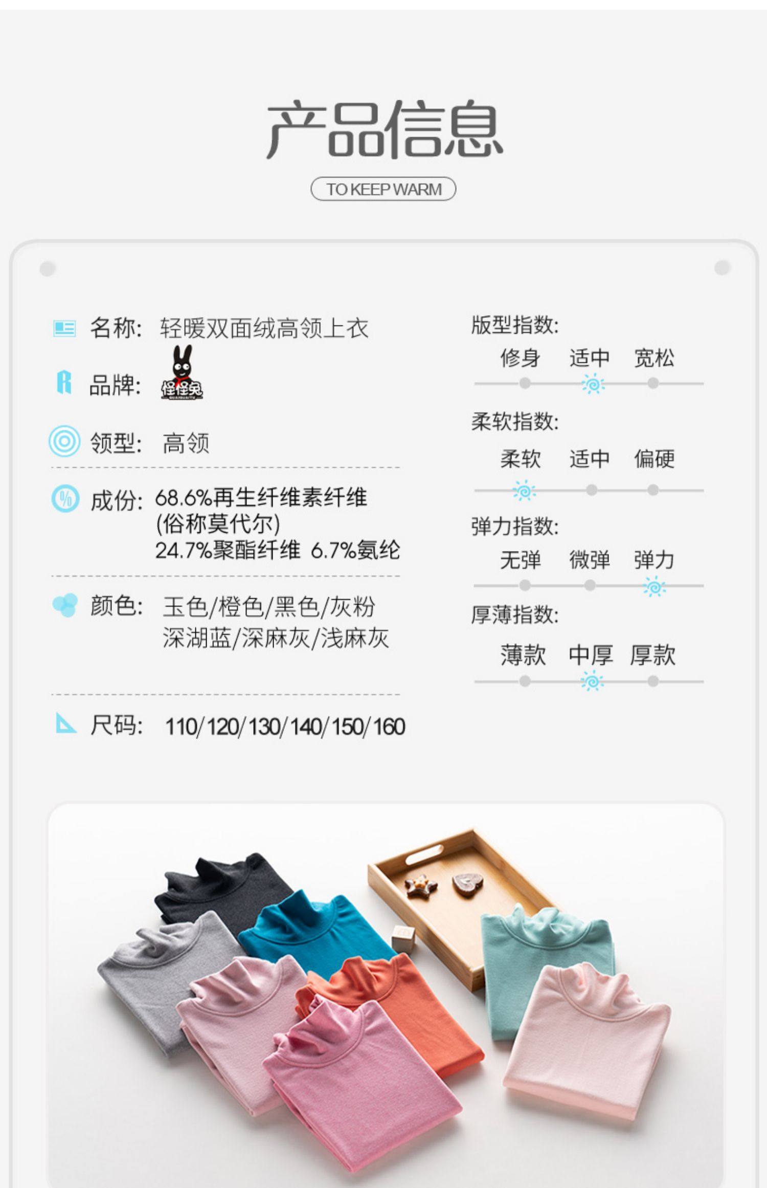 【怪怪兔】莫代尔双面绒自然发热儿童内衣
