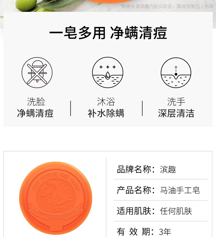 【滨趣】手工马油皂少黑头自制国皂,除螨,抗痘,去除黑头,保湿清洁,泡沫细腻,深层洁面,补水嫩白,清爽控油,洁面/卸妆无压力,黑头不要来,油光说拜拜!