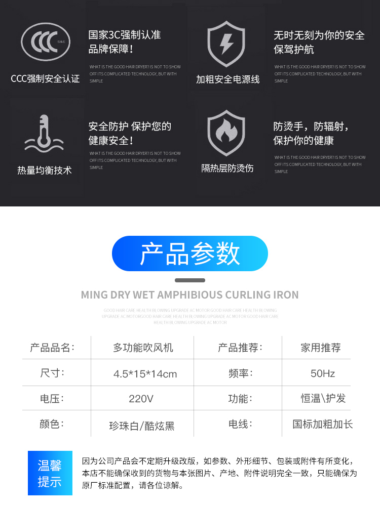 锤子吹风机,速干不伤发,新型抖音网红款,大风量,高热量,速干造型,恒温出风,轻松造型,热量均匀分布,水润离子,恒温安全更护发~