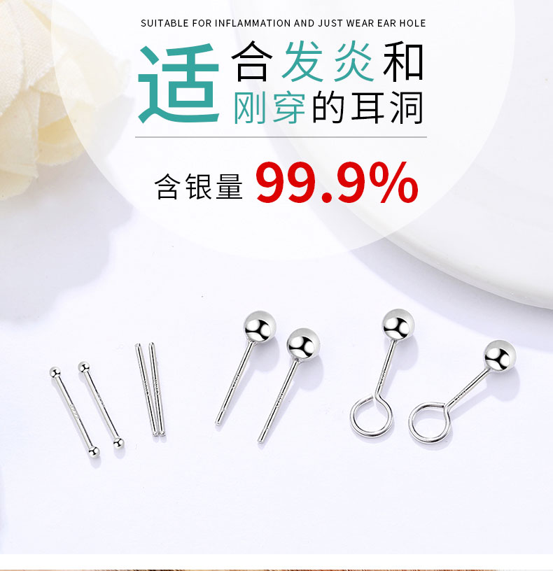 999纯银耳针,999足银耳棍,简约耳棒,新打耳洞养护防闭塞良品,不过敏,解决耳洞老是发炎的烦恼,要打耳洞赶紧备上。