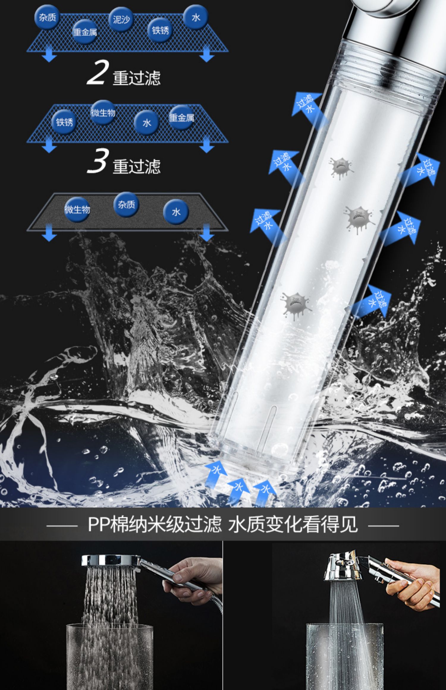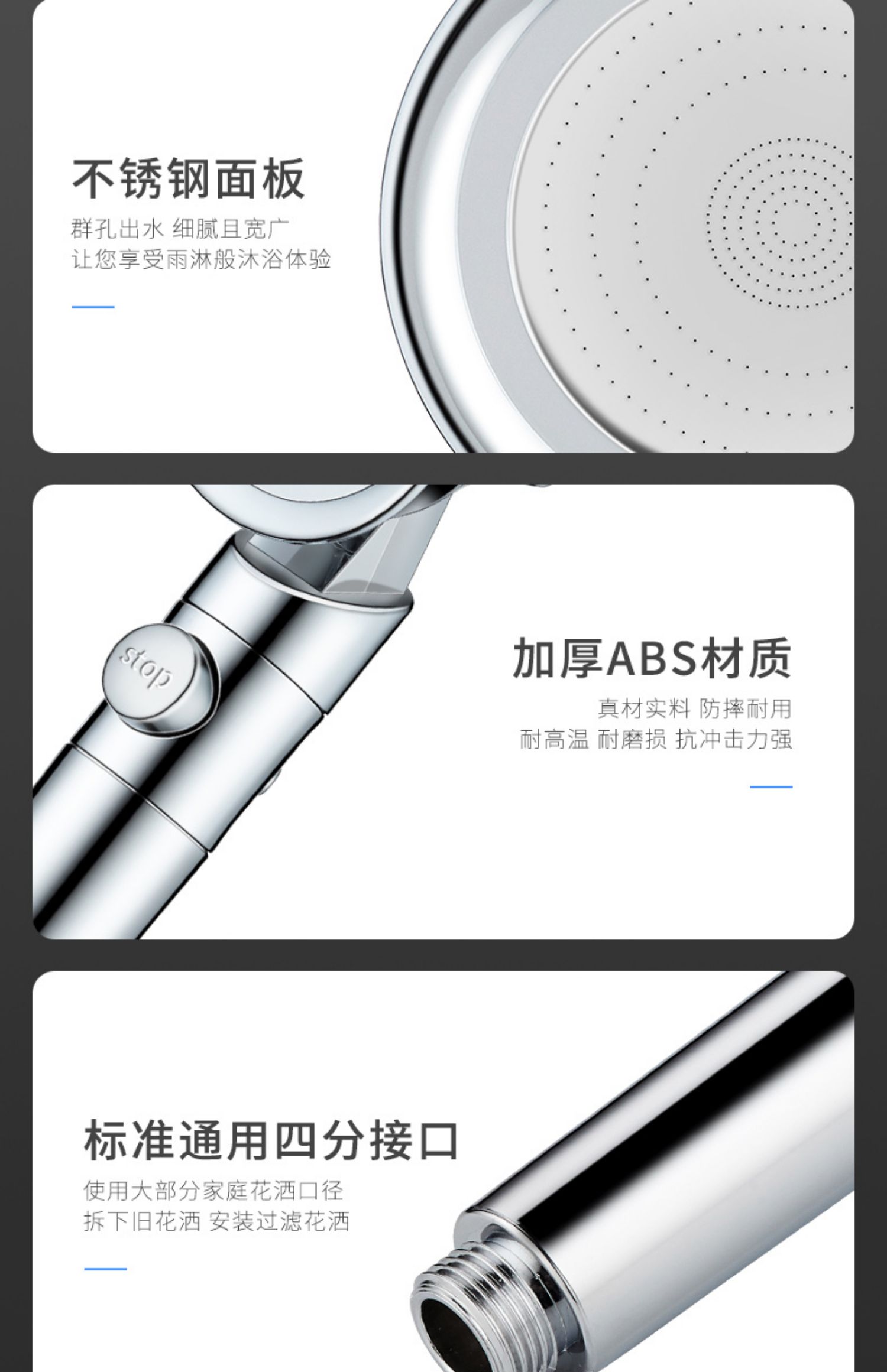 质量取胜!超值沐浴花洒喷头!多孔密集出水顺畅,过滤杂质,超薄、强力增压花洒,真正的好花洒!置身大自然,给您健康生活!【赠运费险】
