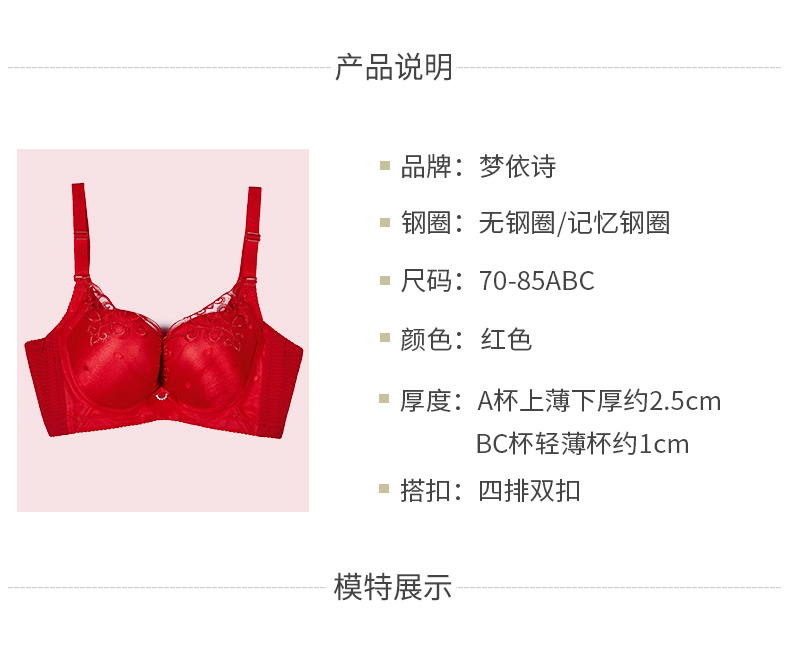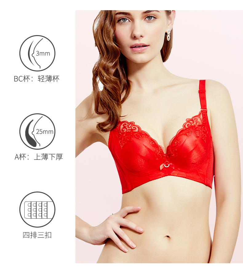 【推荐】【专柜正品,小胸显大】鸿运当头,由内而红,立体聚拢上托,挺立有型,高级质感更舒服,仙美蕾丝,性感舒适,今年你需要红!【赠运费险】
