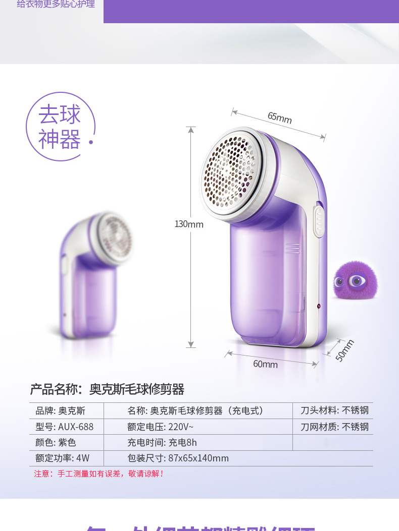 大牌奥克斯,券后只要14.9!三叶旋风刀头,强大动力,蜂巢网罩设计,去球不伤衣,一滑而过,轻松搞定各类毛球!