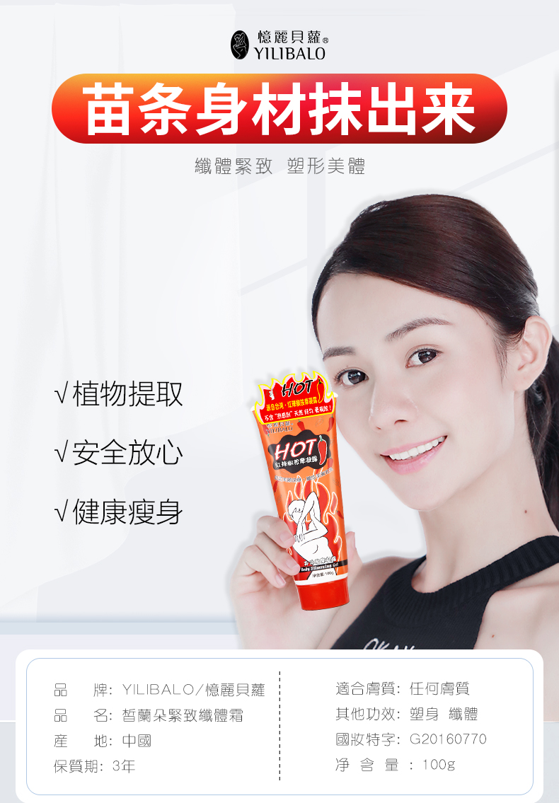 【送手套+保鲜膜】露腿露胳膊的季节到了,想细点!再细点!火遍台湾的红辣椒瘦腿膏,国妆字号,植物提取,安全放心!想瘦哪里抹哪里!肉肉全走开!